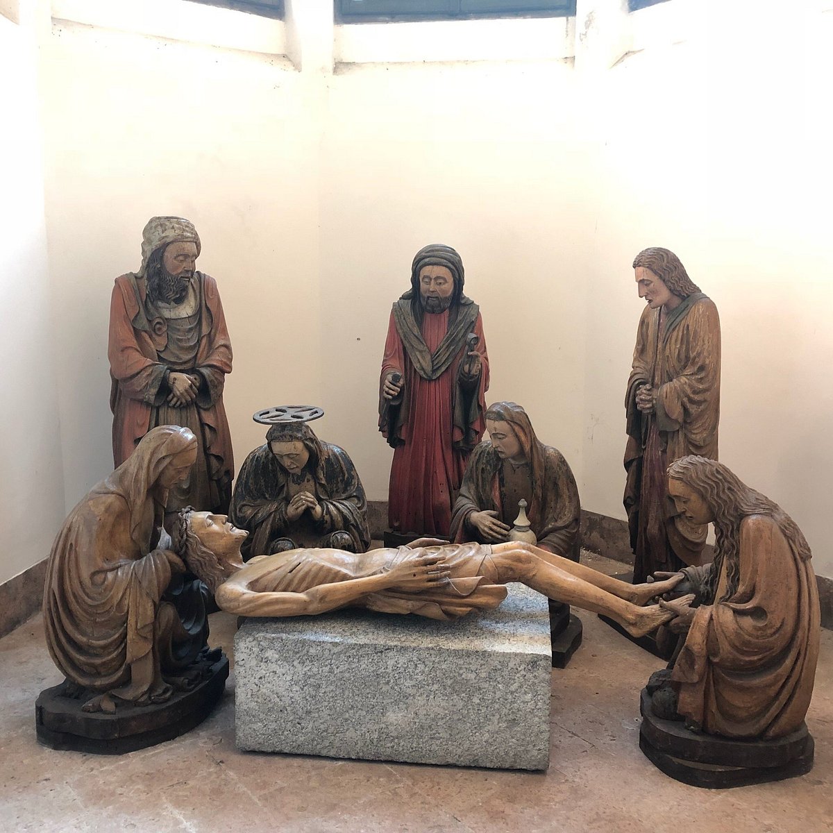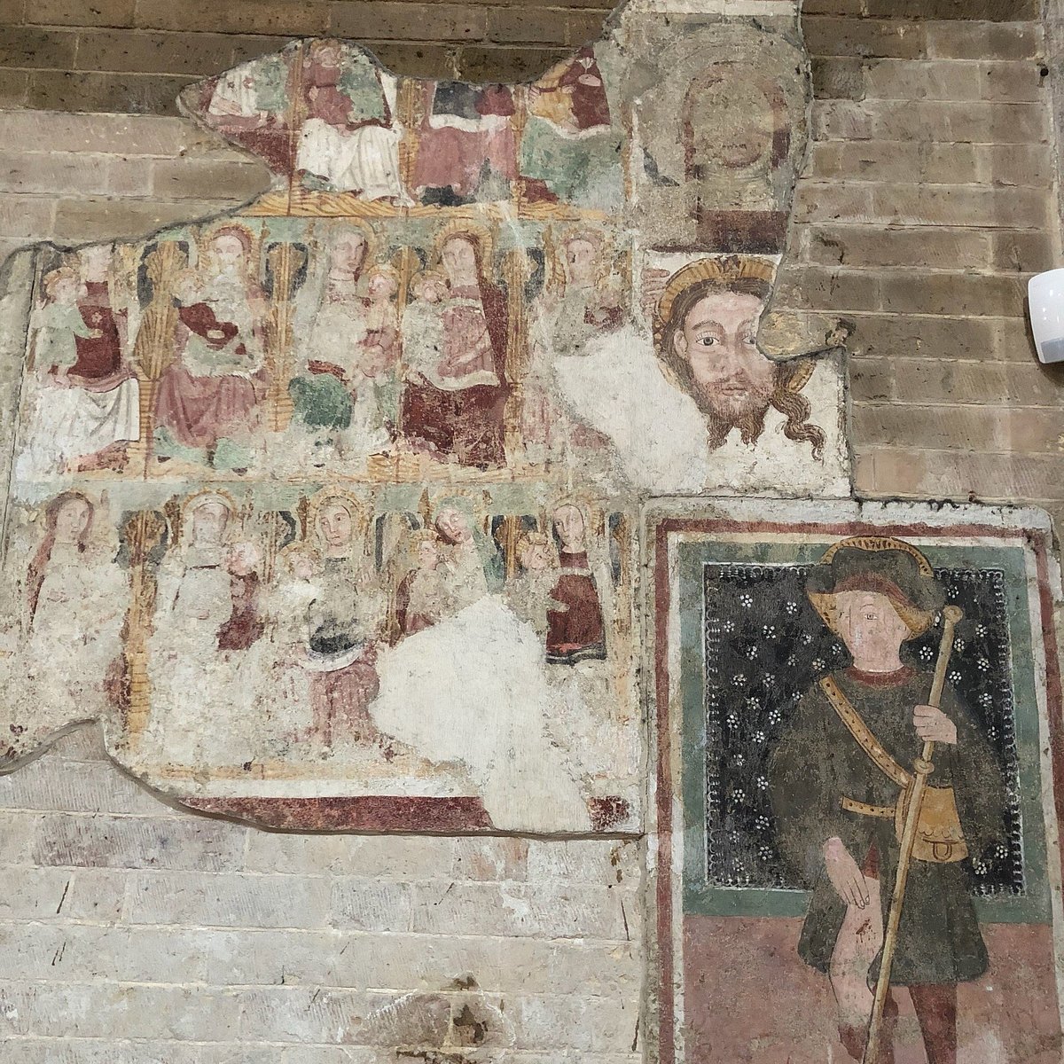 Lungo la navata centrale del duomo di Lodi si ripetono stratificazioni di affreschi. Questo gruppo, che mantiene la posizione originaria, comprende diversi ex voto della Madonna del Latte, risalenti al XIV secolo; Santa Veronica con il sudario, datata ai primi anni del XV, in parte ricoperta da un San Rocco della metà del XV secolo.