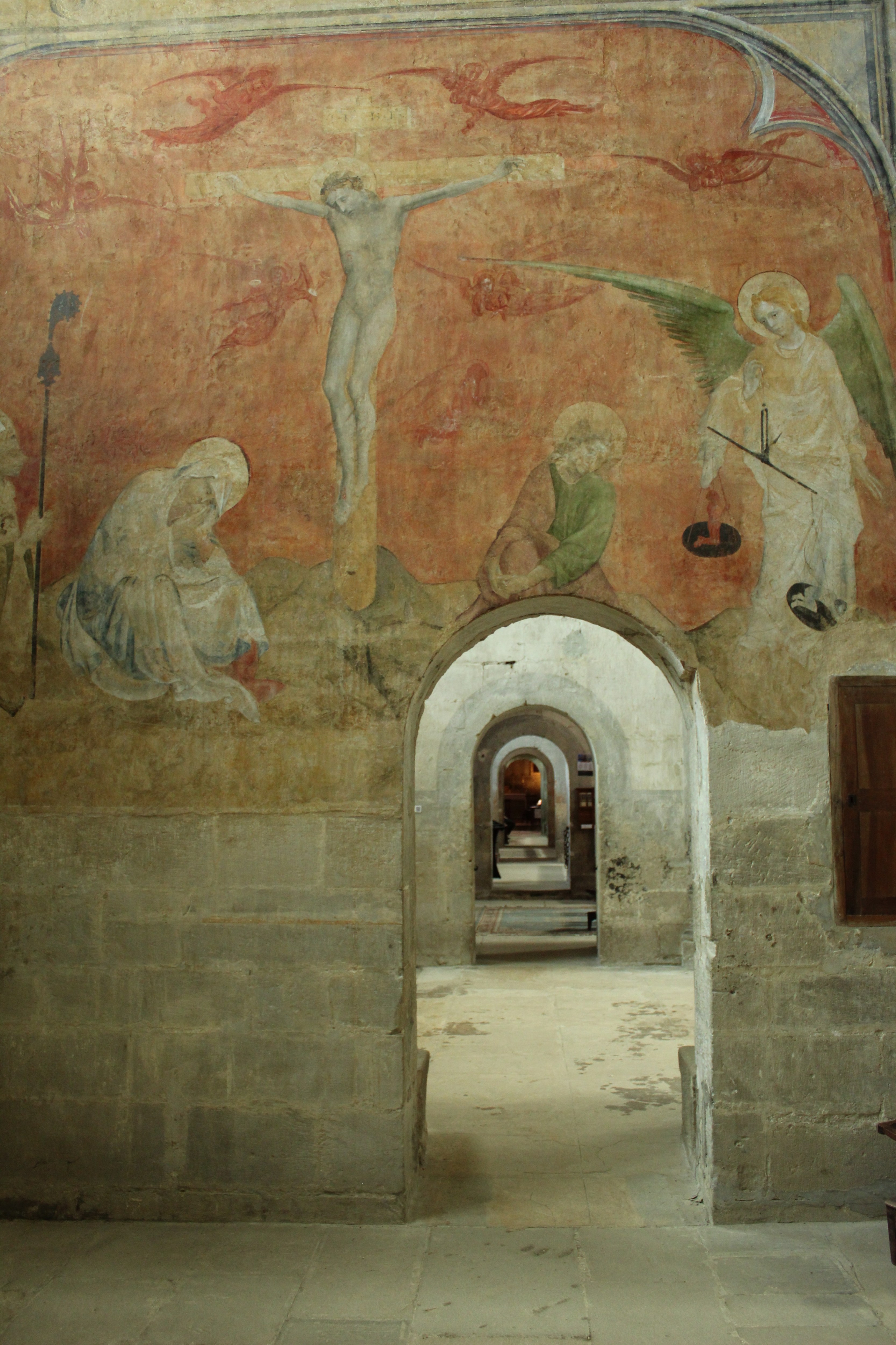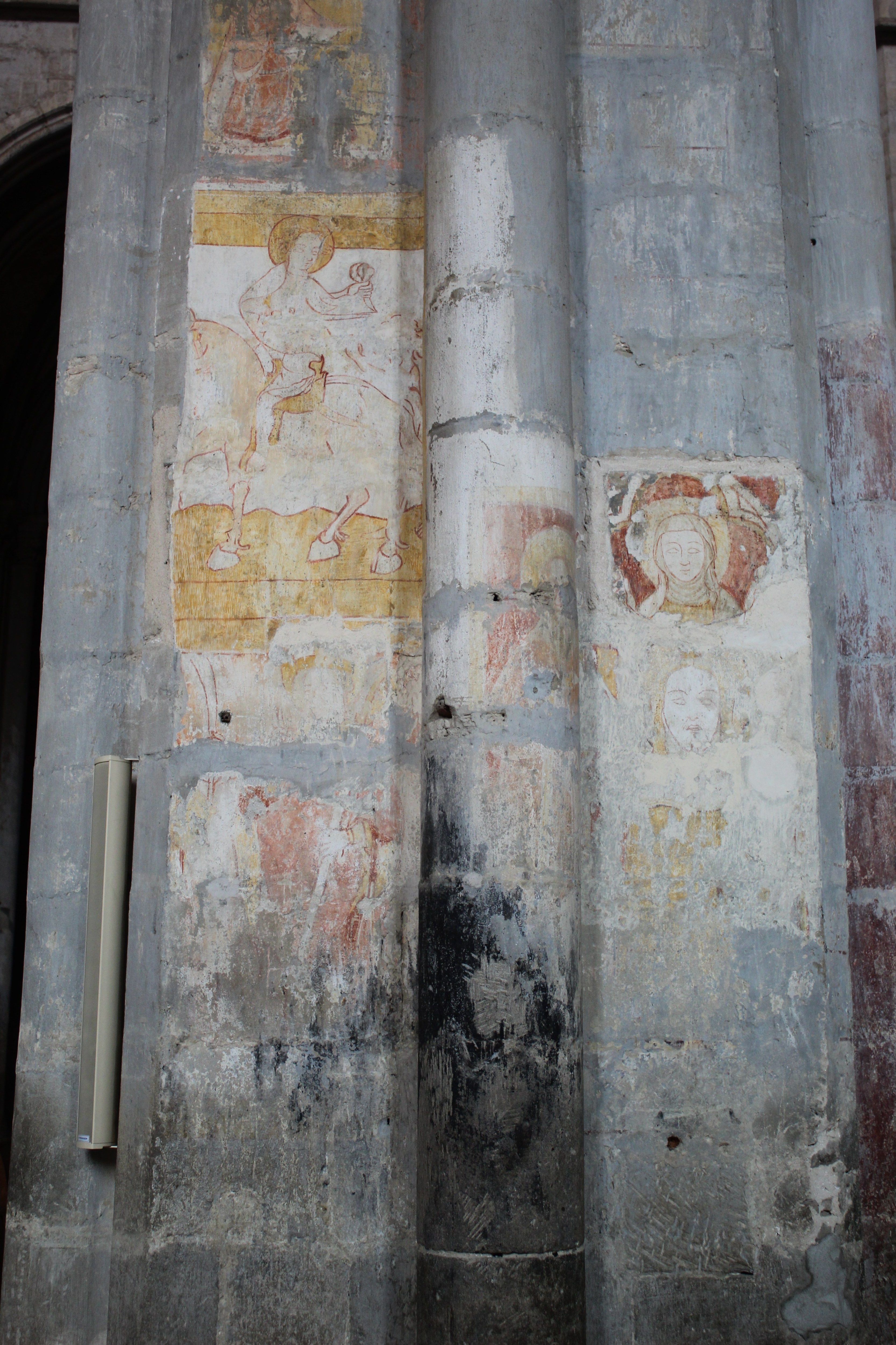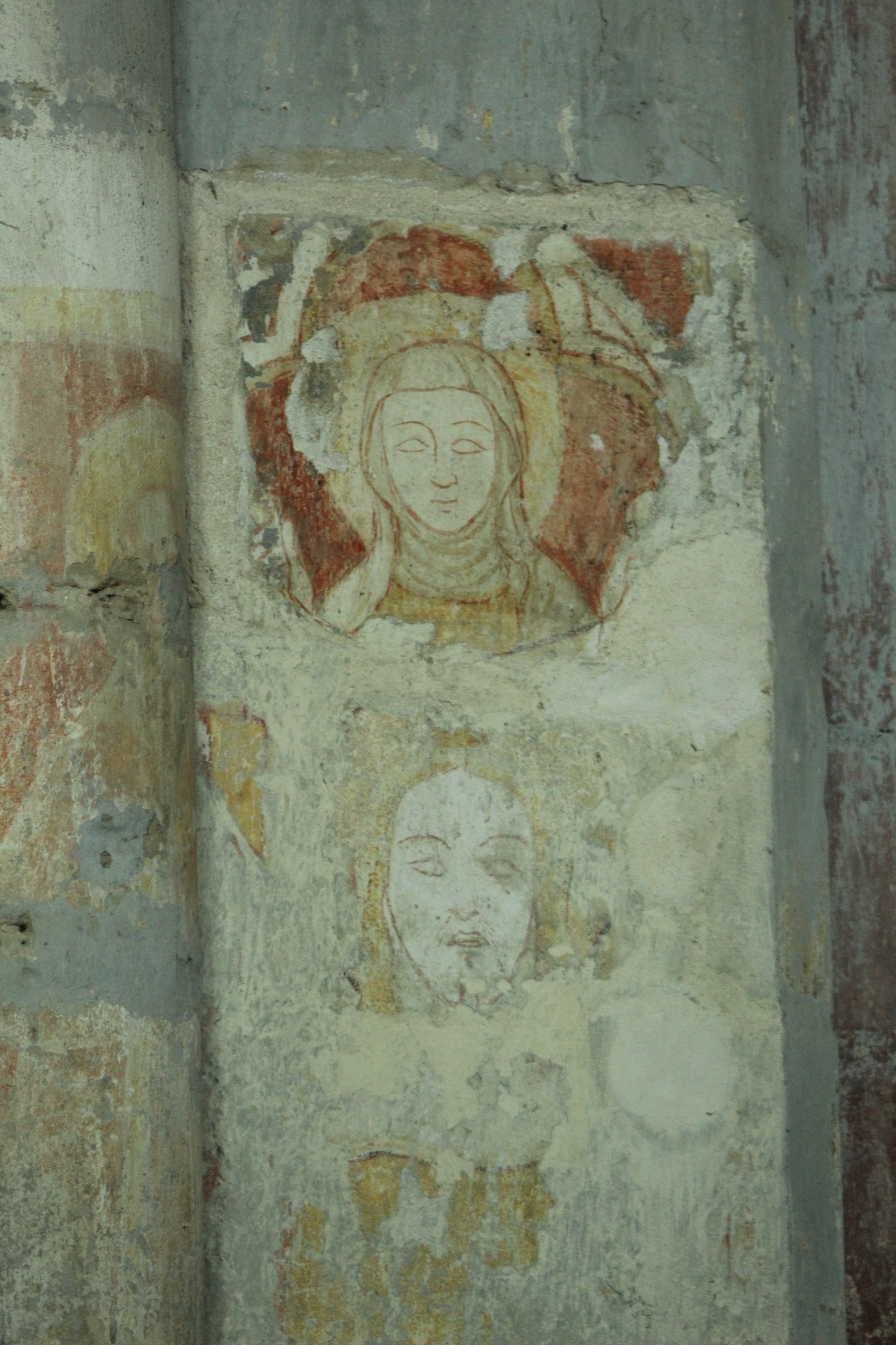 Santa Veronica con il velo, affresco, 1390-1435, pilastro navata sud, Abbaye de Saint-Antoine, Saint-Antoine-l'Abbaye, Francia.