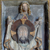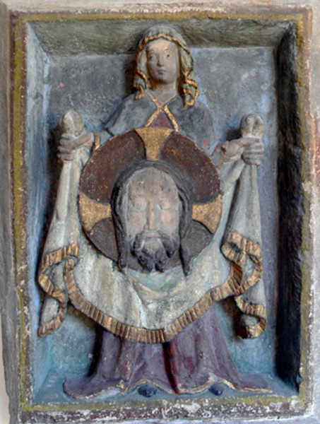 Santa Veronica con il velo, rilievo in pietra policromo, 1420, Regensburg, Germania. Germanisches Nationalmuseum, Nürnberg.