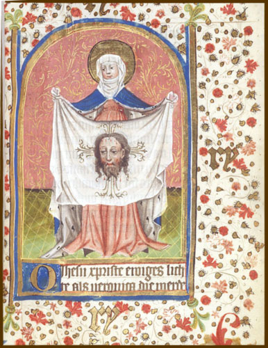 Santa Veronica con il velo, miniatura, Libro di preghiere, ms Egerton 859, f. 13r, 1420-1425, Germania. British Library, London.