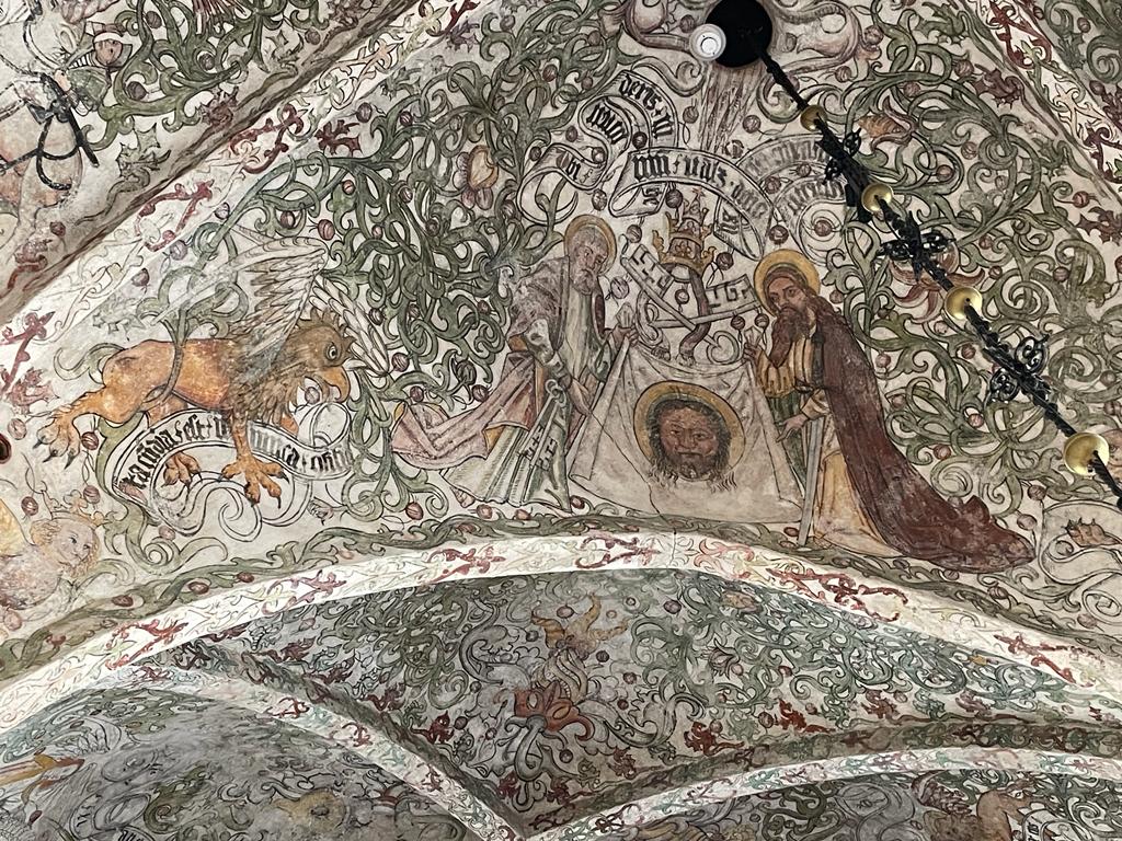 San Pietro e San Paolo mostrano il velo della Veronica, volta, affresco, 1442, Krämarkapellet, Sankt Petri kyrka, Malmö, Svezia.