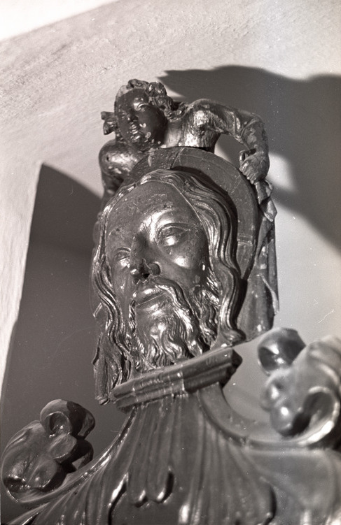 Veronica, scultura in legno, 1400-1499, panca, Municipio, Tallinn, Estonia.