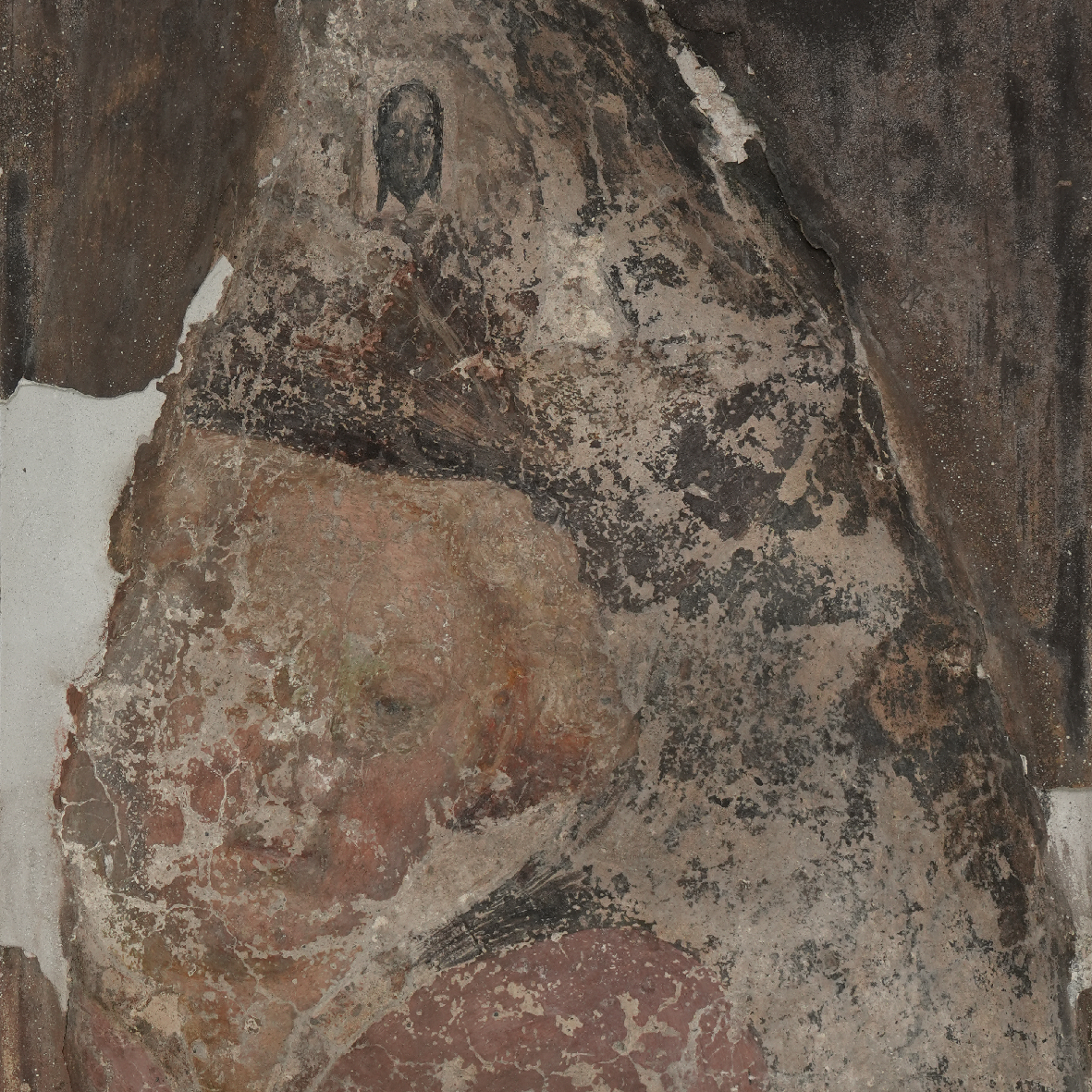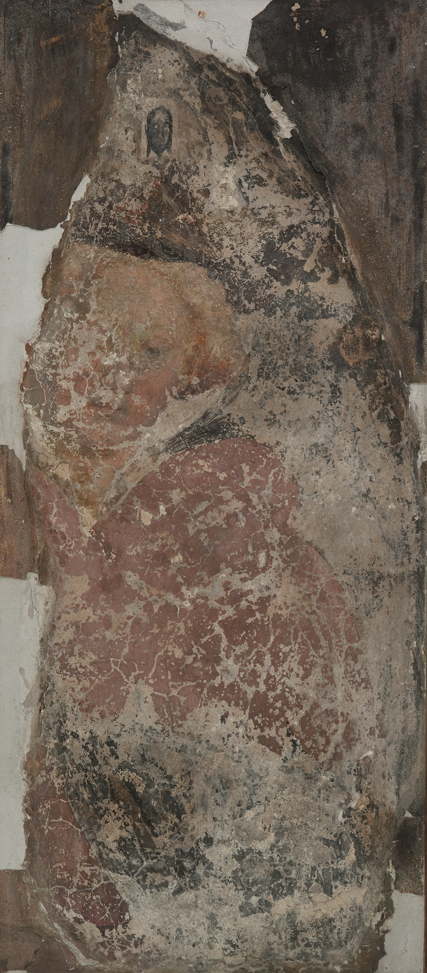 Pittore lombardo, Frammento di pellegrino (insegna di pellegrinaggio dipinta), affresco staccato, 1440-1457, chiesa di san Giovanni in Conca, Milano, Italia. Pinacoteca del Castello Sforzesco (deposito), n. inv. 66.