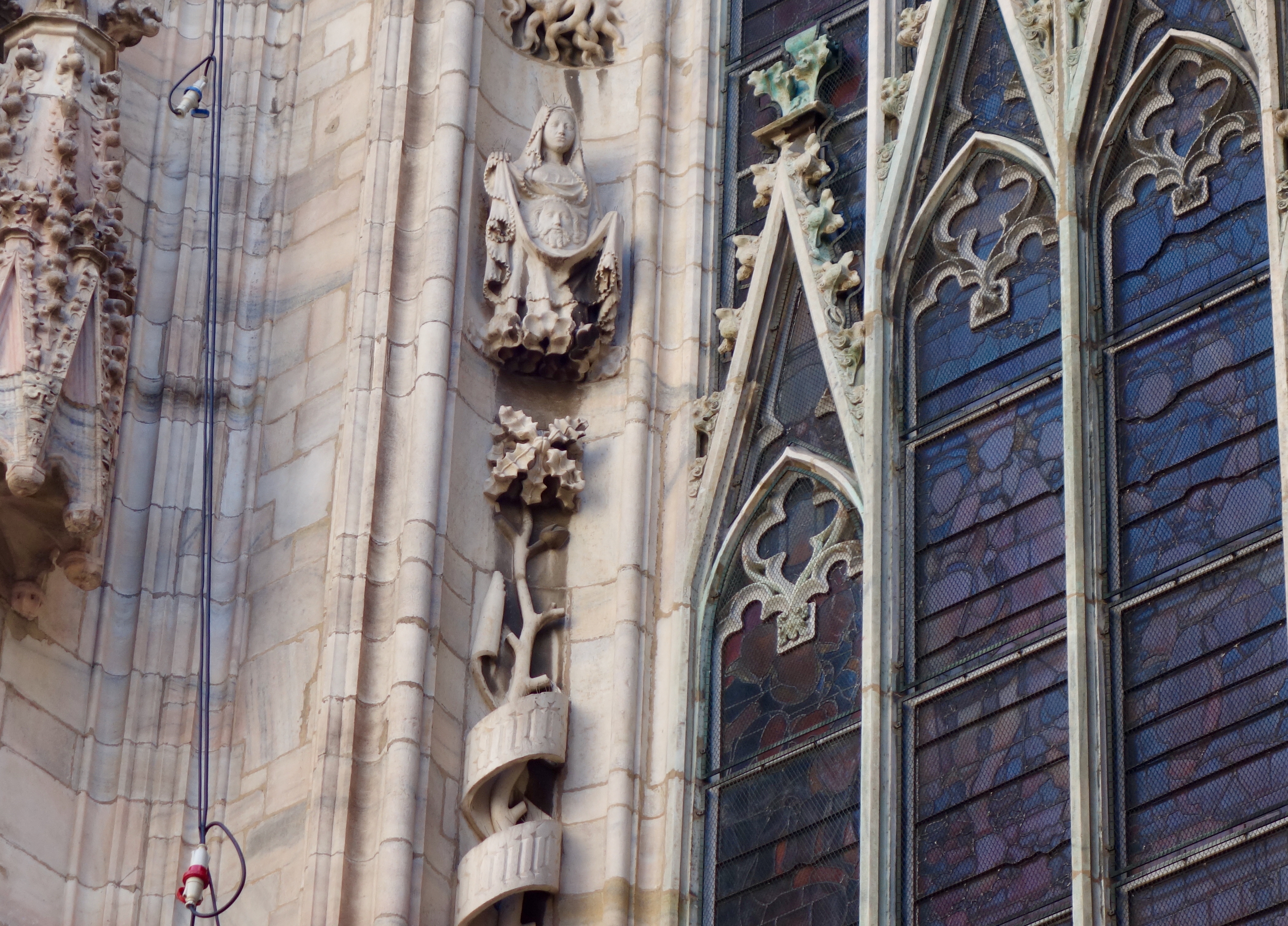 Negli archivi della Fabrica del Duomo, al giorno 20 gennaio 1514, è riportato il pagamento di una statua di santa Veronica (non è specificato se è quella del finestrone).