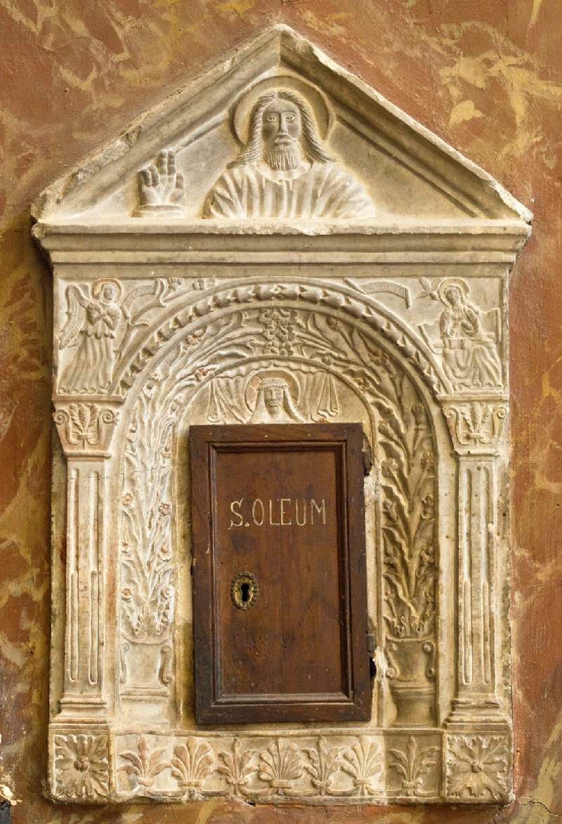Bottega umbra, Tabernacolo per olii santi, scultura in marmo bianco, 1450-1499, Italia. Diocesi di Terni - Narni - Amelia, Terni (fonte BeWeb).