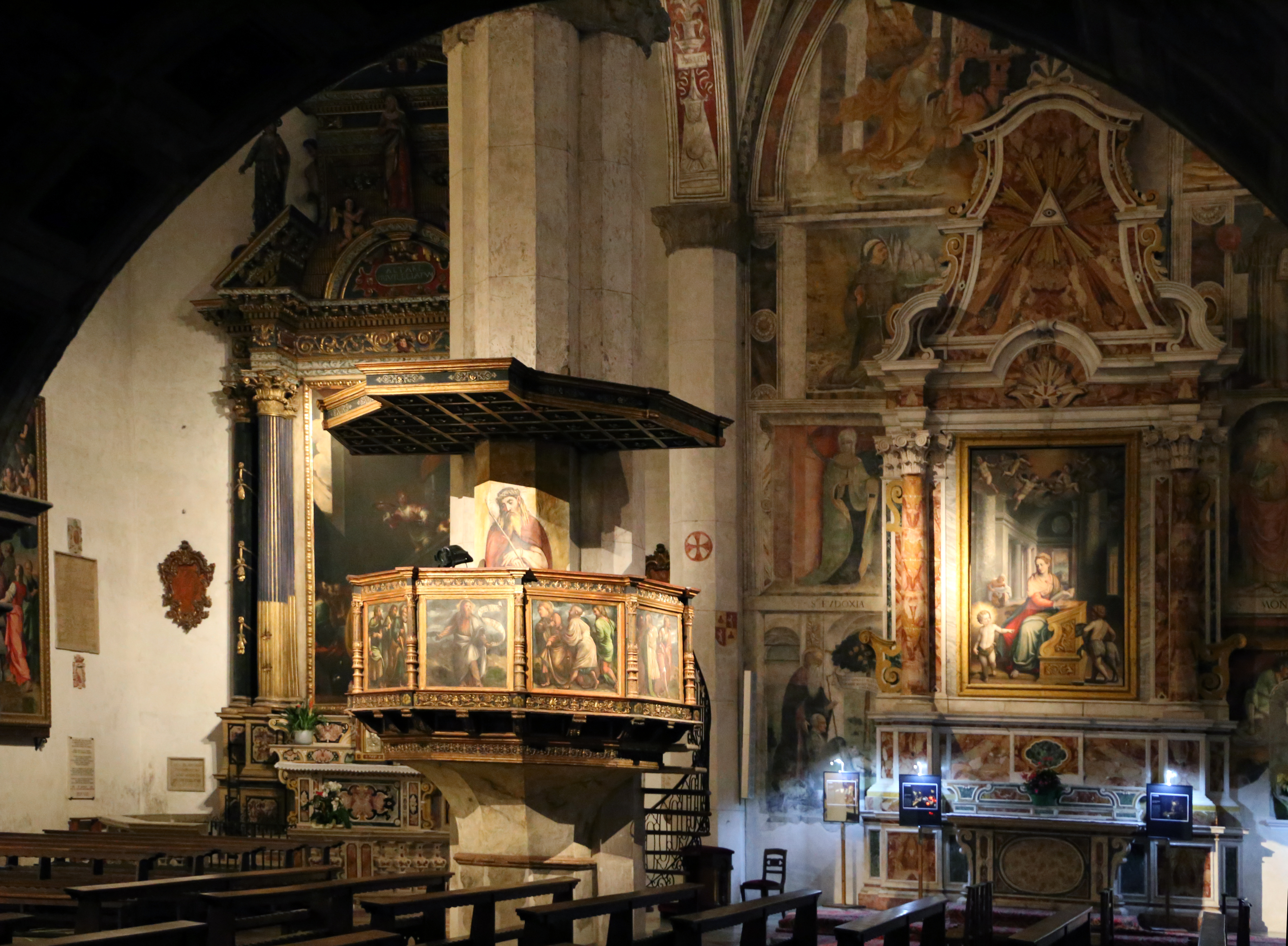 Lo splendido polittico detto della “Madonna della Misericordia” datato alla seconda metà del quindicesimo secolo viene ultimamente attribuito al cremonese Antonio Della Corna.