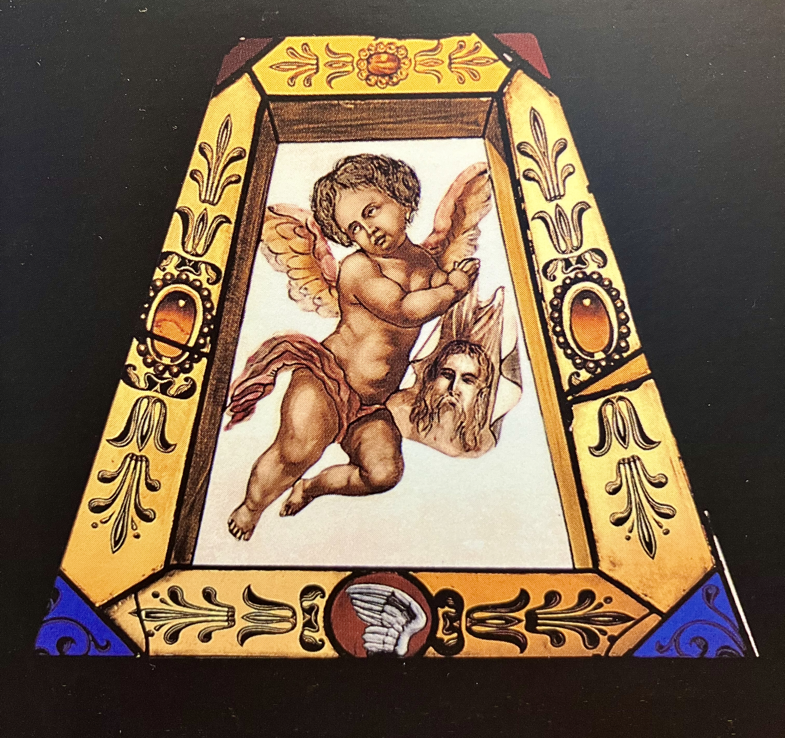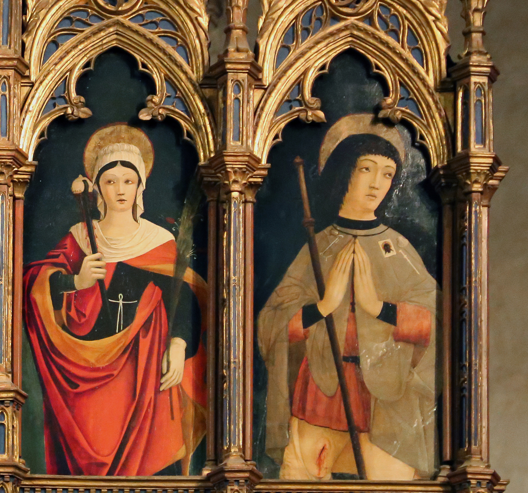 Antonio Della Corna (attribuito), Veronica (insegna di pellegrinaggio dipinta), part., Polittico della Misericordia, polittico, 1450-1490, altare maggiore, Parrocchiale dell’Assunzione della Beata Vergine Maria e Sant’Andrea Apostolo, Asola (Mn), Italia.