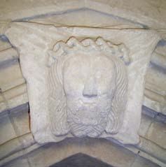 Velo della Veronica, chiave di volta, arenaria, 1480, portale antico della torre, St. Maria Kirche, Weißdorf, Germania.