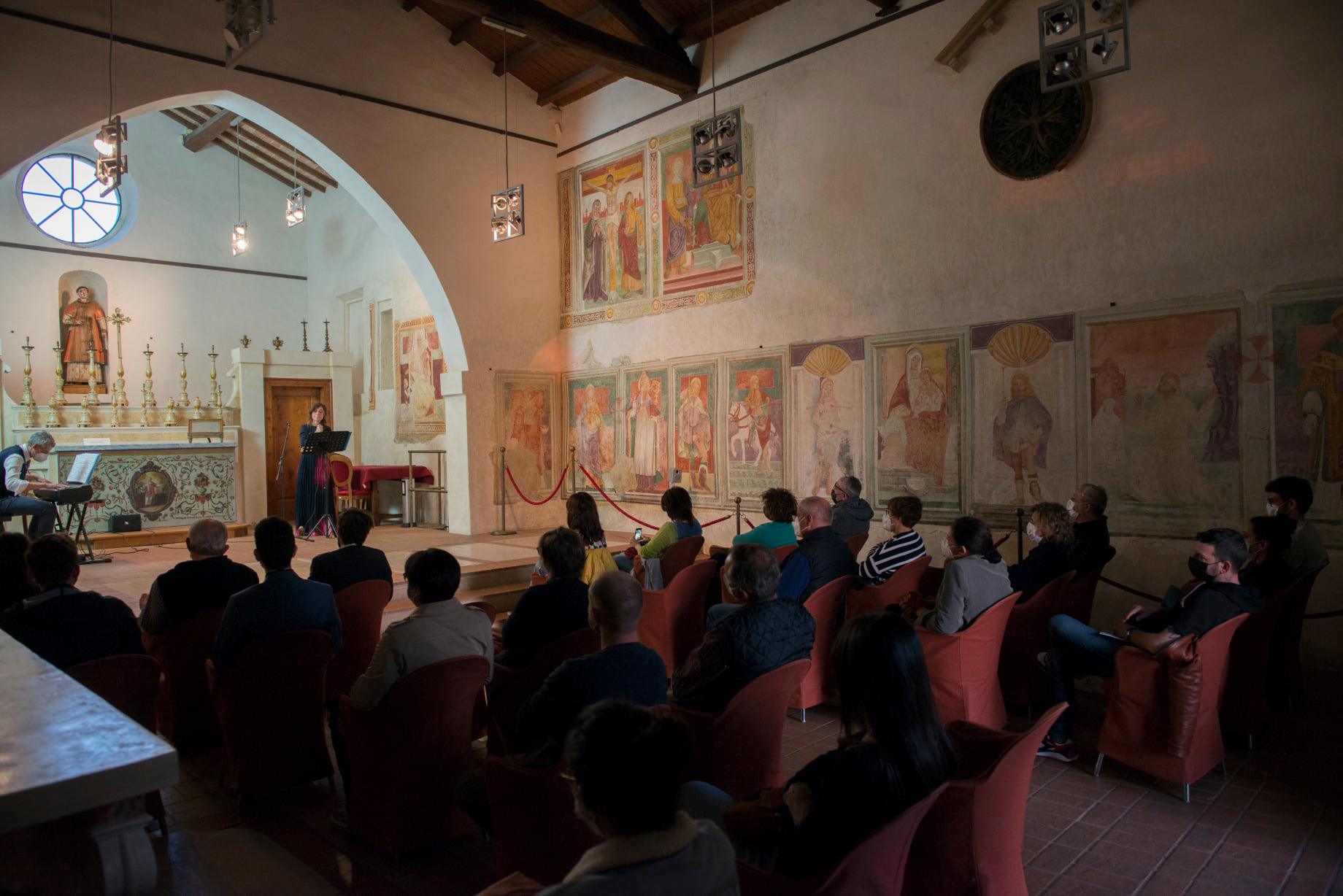 La figura accanto a Cristo è in parte perduta a causa delle macchie di umidità e a gravi crepe. La figura, per il soggetto e per la postura, viene identificata con la Veronica che sostiene il velo. Dopo la Salita al Calvario la serie di dipinti sulla parete sembra interrompersi per l’altare della Pietà. In realtà la grande cornice ottocentesca è stata posta sopra l’affresco preesistente con la scena del Compianto che segue la salita al Calvario alla quale s’accorda nel disegno del paesaggio. Solo, per colmare lo spazio superiore circoscritto dall’ancona, sono stati aggiunti gli angioletti e la croce.