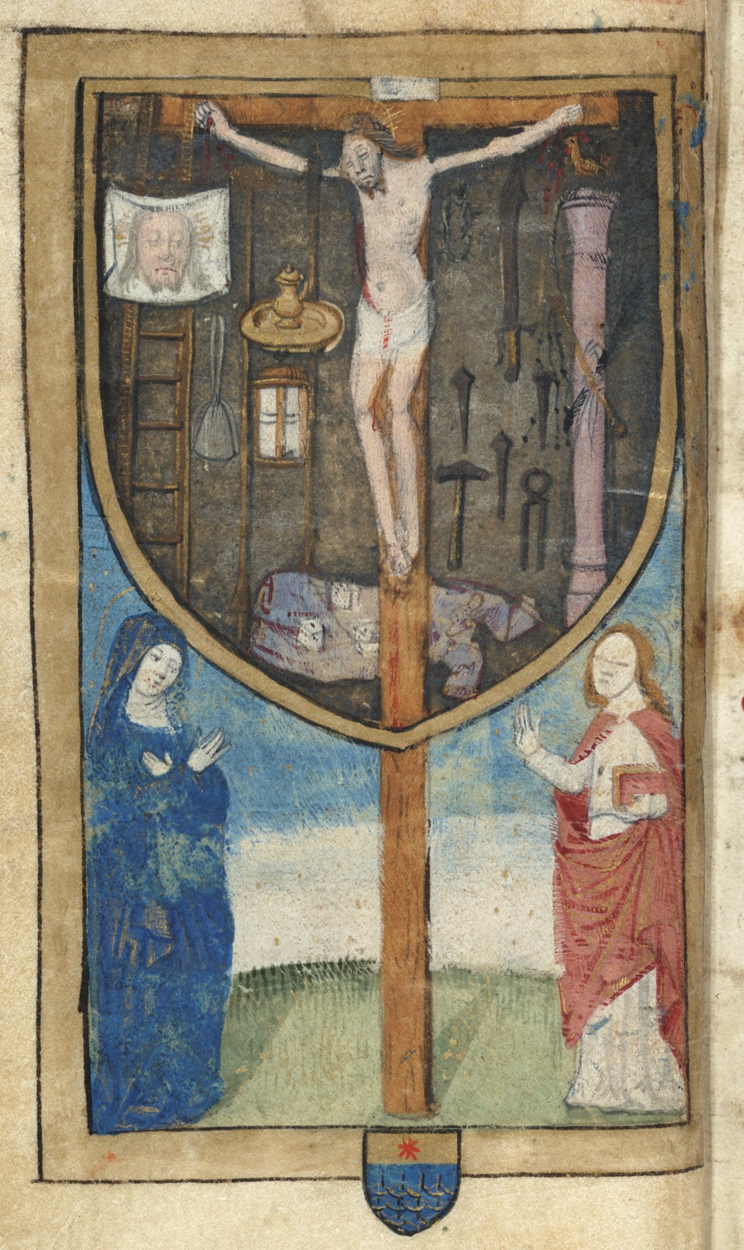 Arma Christi, miniatura, Traité de blason, ms 01026, f. 0012, 1492 ca., Francia. Thomas Fisher Rare Book Library, Toronto.
