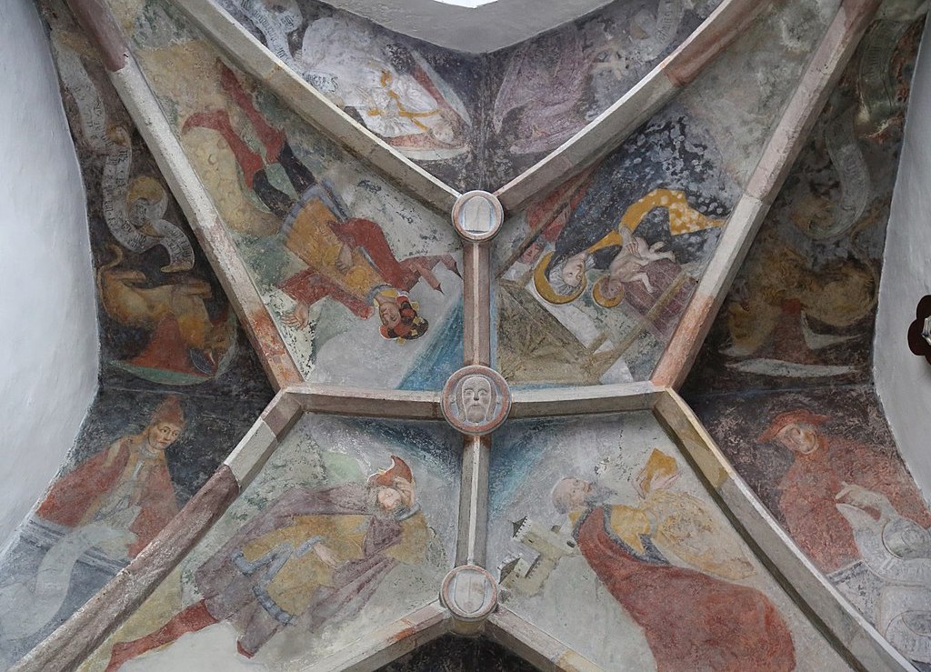 Veronica, chiave di volta, rilievo, 1495-1500, coro, chiesa St.Severin, Foiana (Bz), Italia.