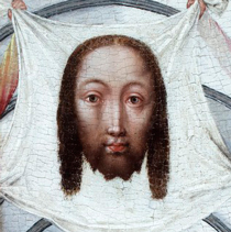 Bernhard von Orley, Velo della Veronica sostenuto da angeli, part., Sant'Anna tra Sante e Adorazione dei magi, tavola, 1500 ca., Pfarrkirche Heilig Kreuz, Geisenheim, Germania.