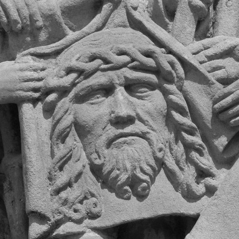 Veronica riceve il velo da Cristo, Via Crucis monumentale, V stazione, rilievo in pietra, 1500-1503, Bamberger Kreuzweg, Sankt-Getreu-Straße, Bamberg, Germania.