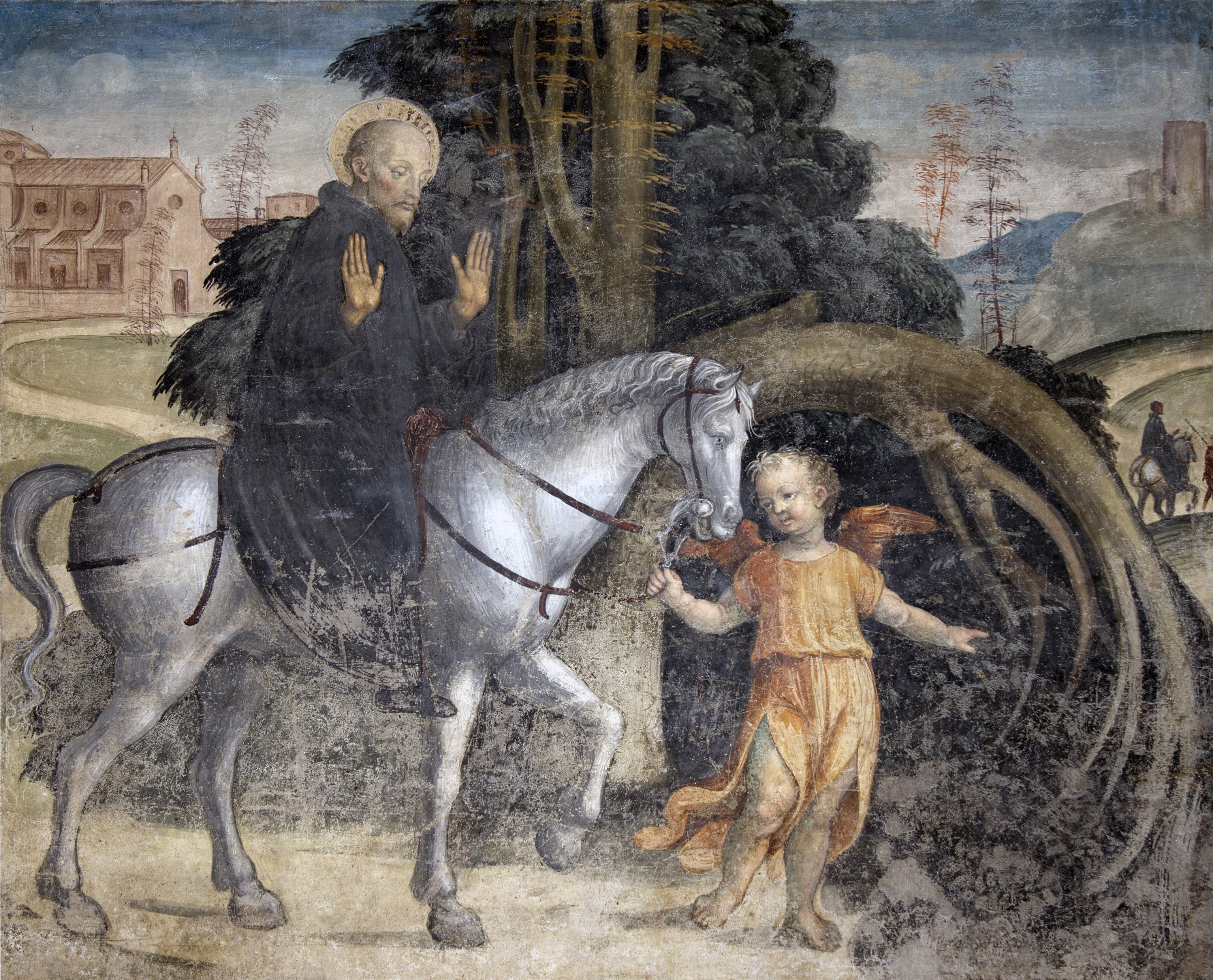 La cappella dedicata a S. Martino, a testimonianza del legame tra Pavia e il santo, è immediatamente alla sinistra dell’altare maggiore. In virtù dell’antefatto storico per cui la fanciullezza del santo si svolse a Pavia, l’anonimo artista ambientò a San Martino Siccomario l’episodio del “dono del mantello al povero”, avvenuto secondo la tradizione ad Amiens, con una straordinaria veduta a volo d’uccello sulla città di Pavia e sul paesaggio del suo contado.