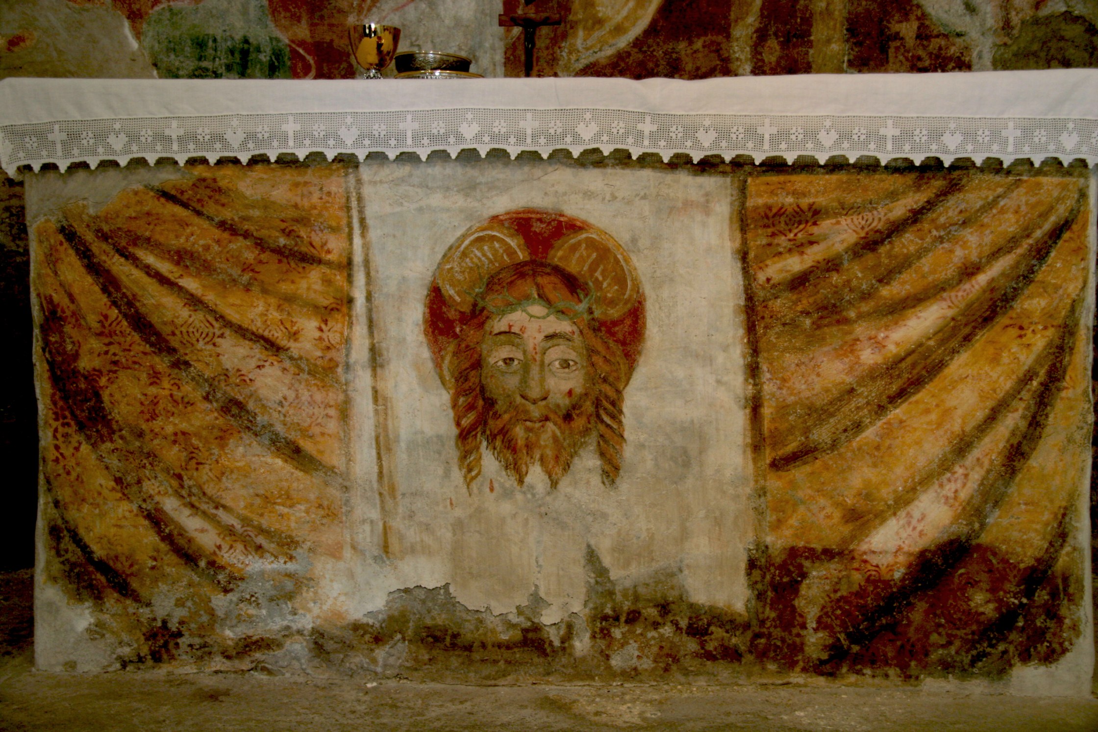 Velo della Veronica, paliotto, dipinto su pietra, 1510 ca., chiesa di Santa Veronica alle Fornaci, Castelveccana (Va), Italia.