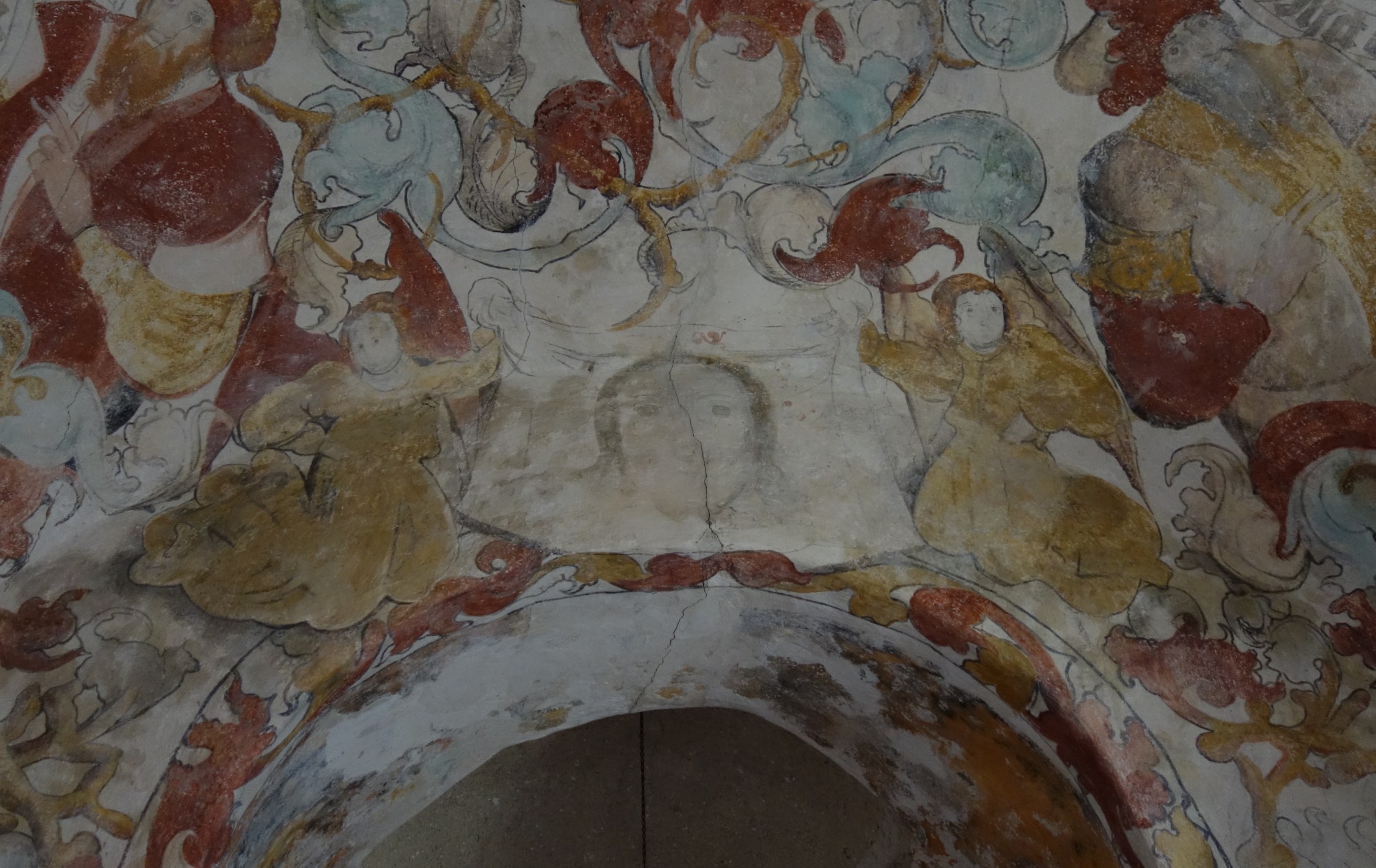 Velo della Veronica sostenuto da angeli, soprarco, 1520 ca., cappella cimiteriale (Ursprungskapelle), Unserfrau, Austria.
