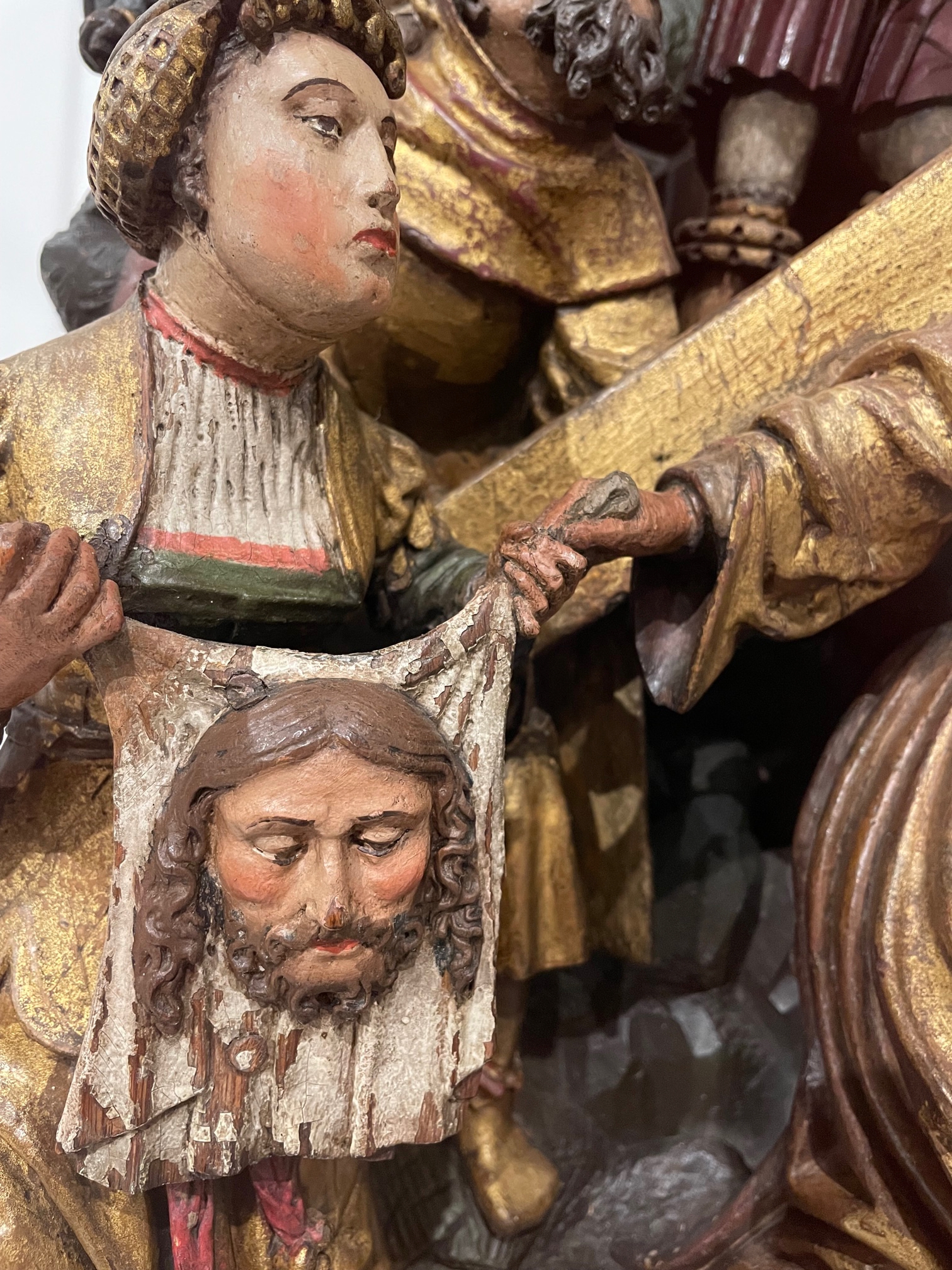 Salita al Calvario, scultura in legno policroma, 1520-1525, Paesi Bassi del nord o Rhin inferiore, Olanda. Musée Unterlinden, Colmar.