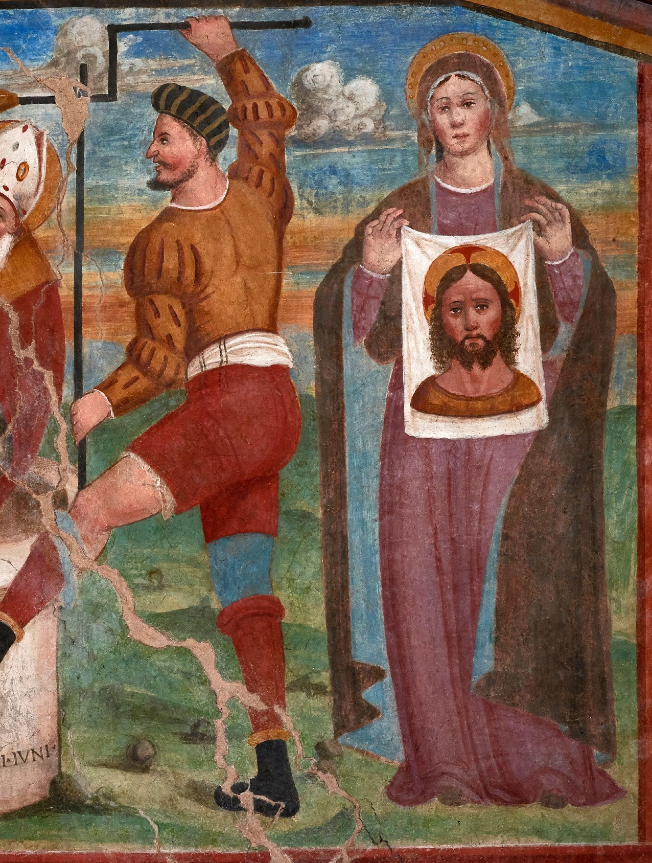 Martirio di Sant'Erasmo e Santa Veronica, affresco, 1522, chiesa di S.Giovanni Battista, Pieve di Lumezzane (Bs), Italia.