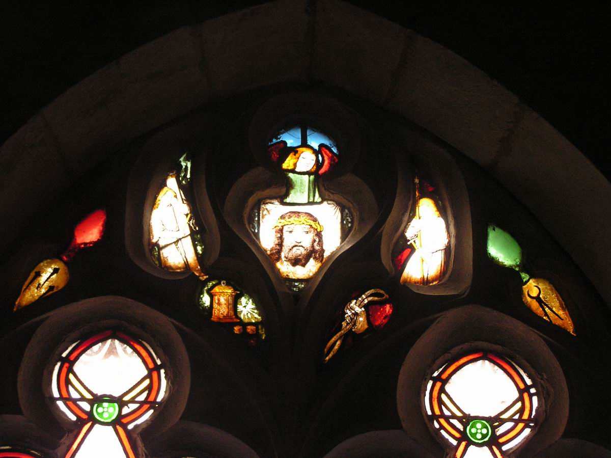 Vitrail de la Sainte Face, vetrata, 1500-1550, Eglise Saint Jean-Baptiste, Jasseron, Francia.