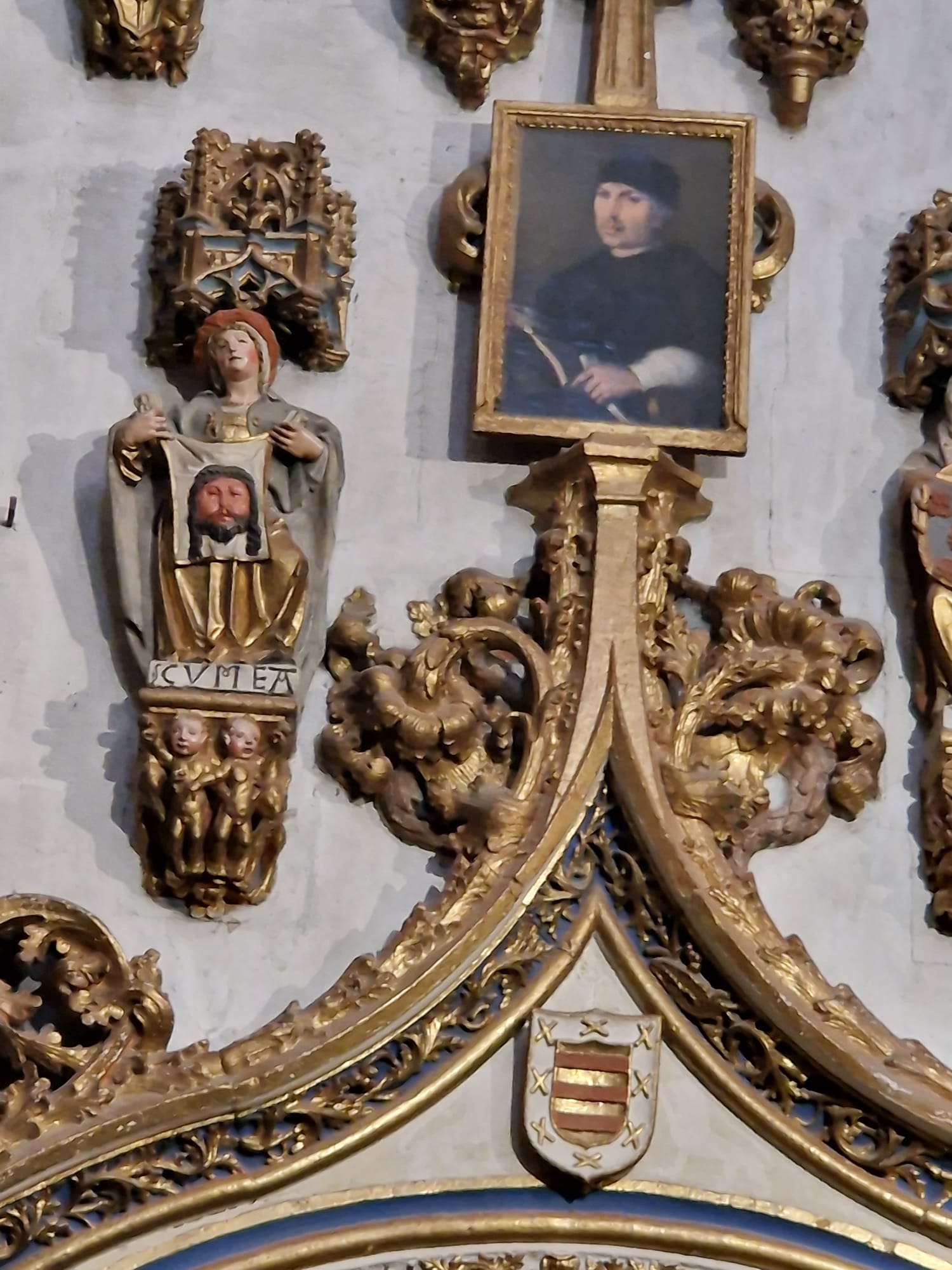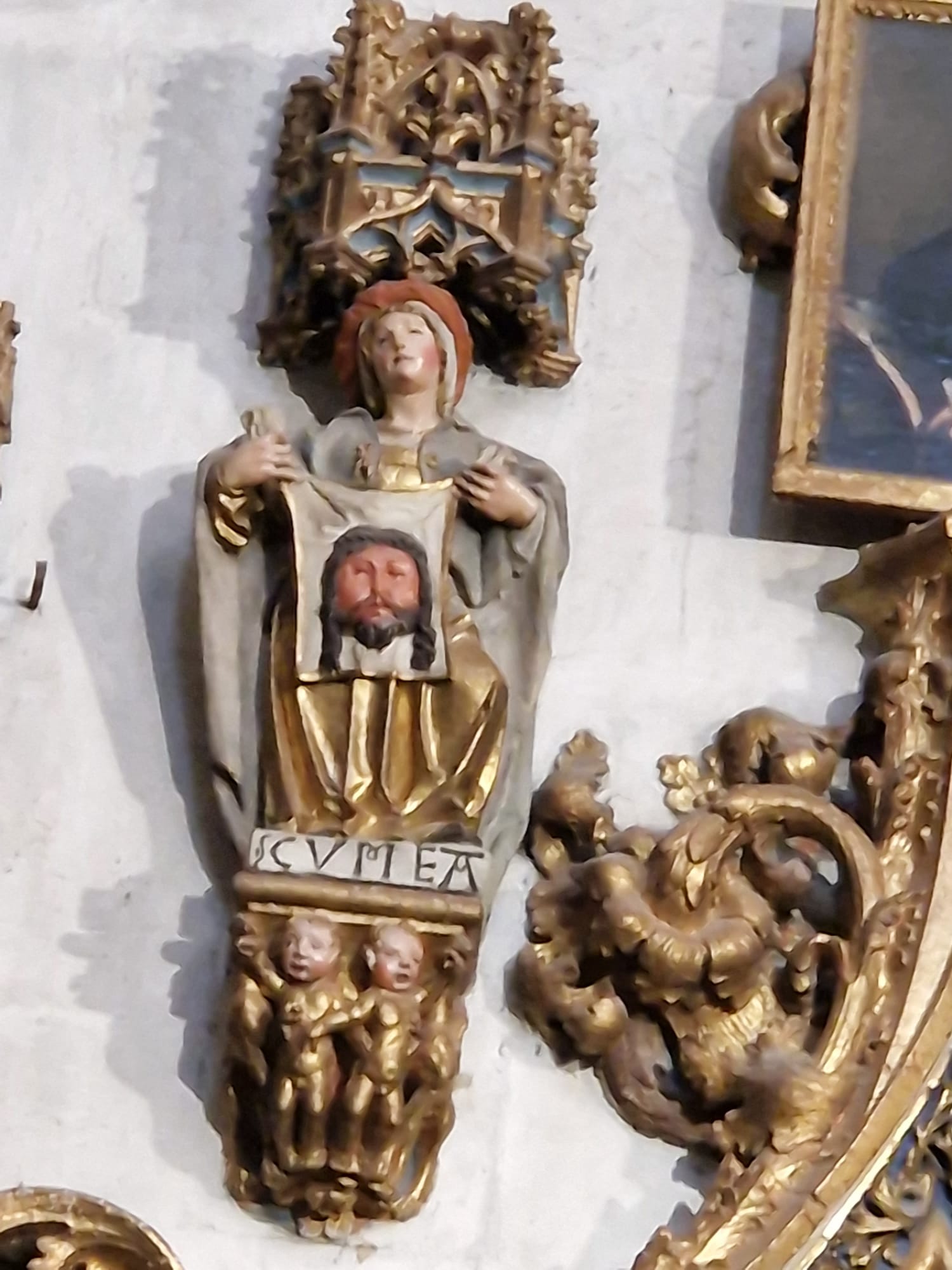 Santa Veronica con il velo, statua in legno policroma, 1515-1530 ca., Capilla Dorada o de Todos los Santos, Catedral de la Asunción de la Virgen (Catedral Nueva), Salamanca, Spagna.