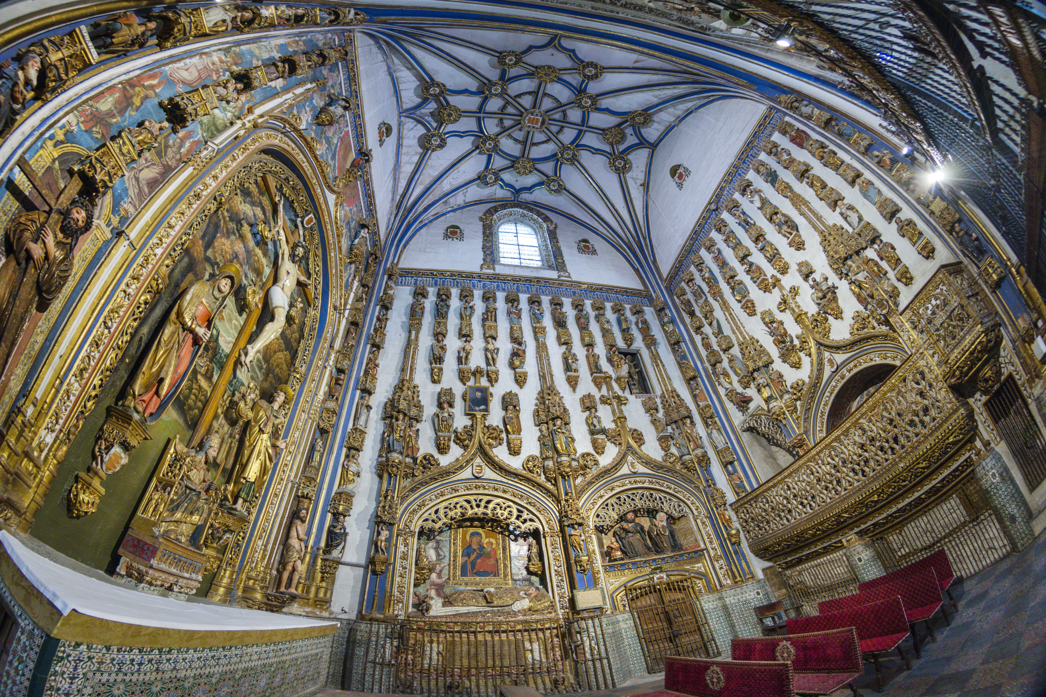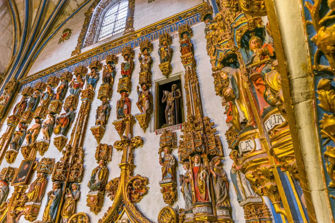 La cappella prende il nome dal colore dorato dominante nelle più di cento statue che coprono le pareti. Le statue raffigurano personaggi dell’Antico e del Nuovo Testamento, Apostoli, Santi, Sibille, Profeti, ecc. La cappella, acquistata dal canonico Sánchez Palenzuela per la sepoltura sua e della sua famiglia, fu la prima ad essere costruita contemporaneamente alla nuova cattedrale. Da qui si accedeva alla vecchia cattedrale attraverso una porta in seguito murata. Il denaro con cui le famiglie benestanti acquistavano le cappelle laterali finanziavano i lavori della costruzione del nuovo tempio.