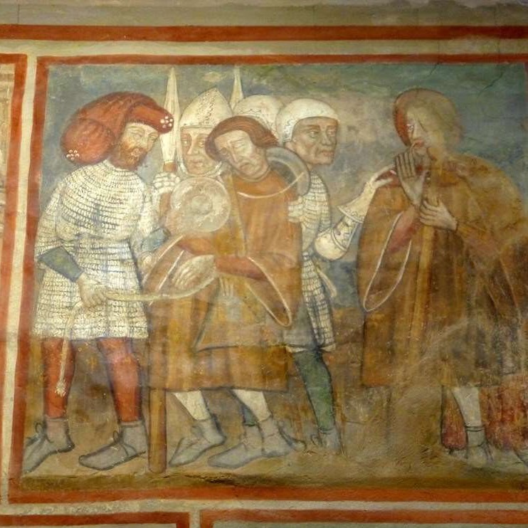 Sulla parete meridionale, sopra la finestra, è raffigurato il velo della Veronica, il volto di Cristo, scuro con i grandi occhi aperti, appare fortemente stilizzato secondo lo schema delle insegne di pellegrinaggio.