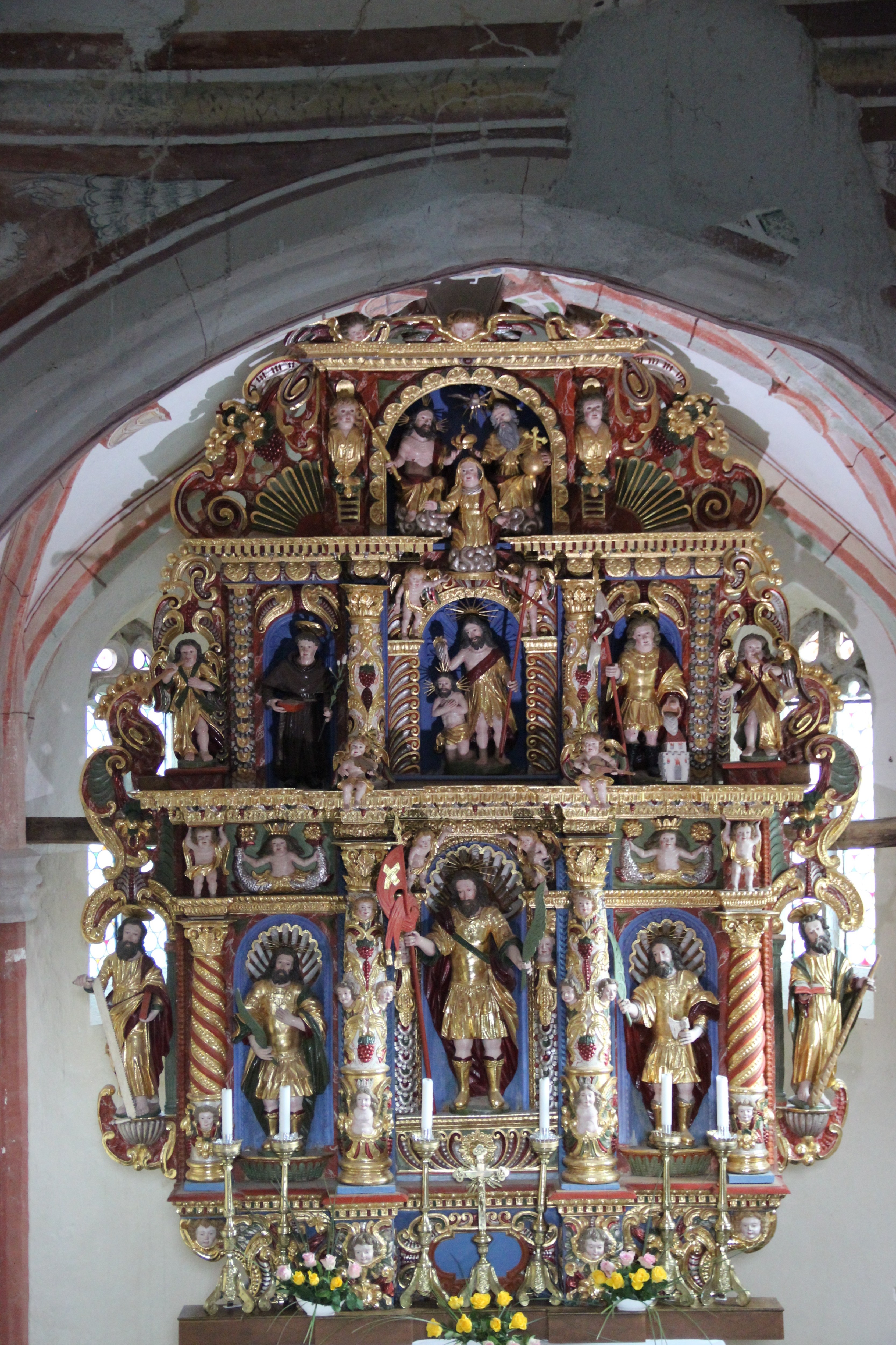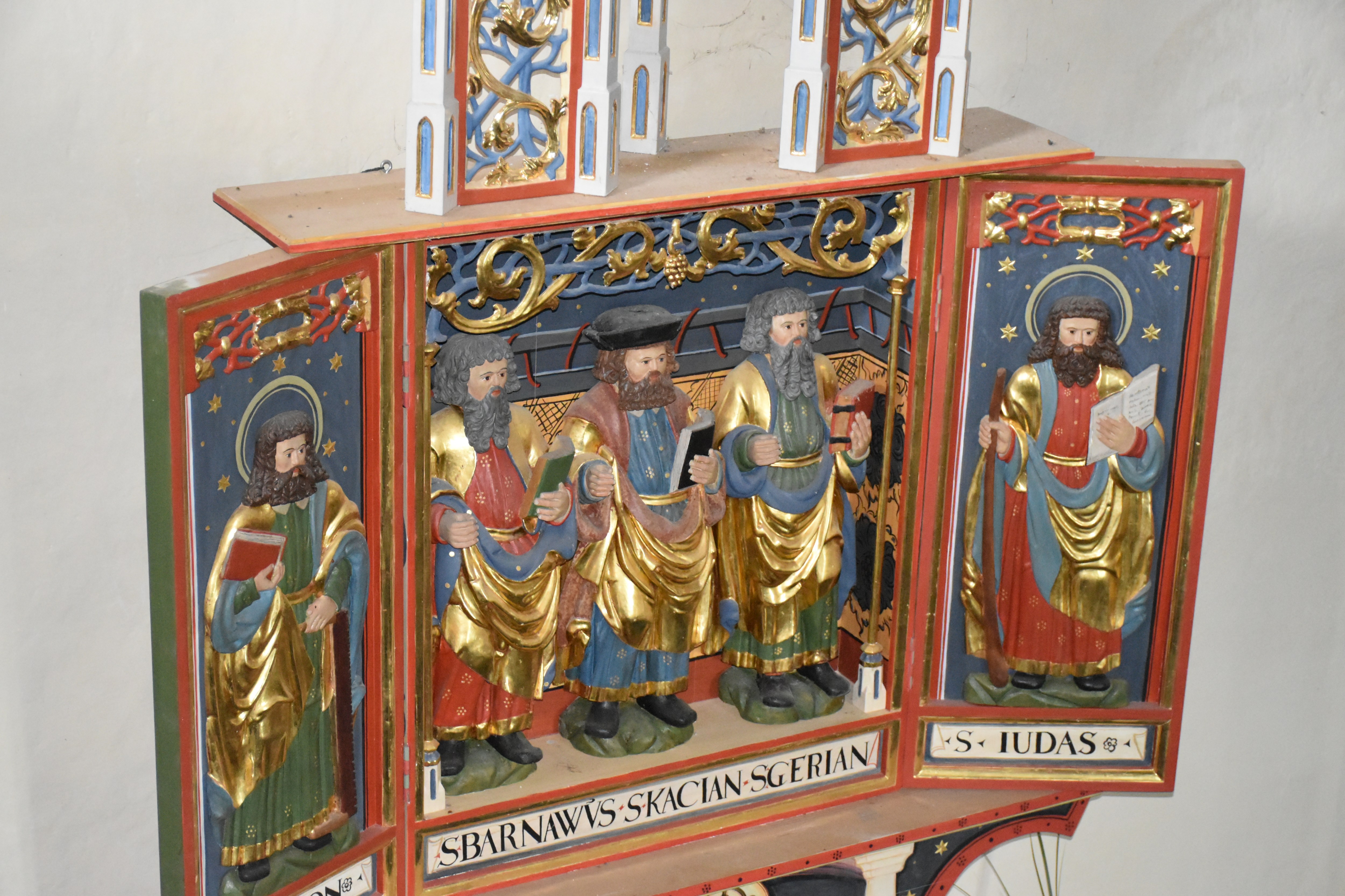 L’oggetto della chiesa artisticamente più importante è l’altare tardogotico di San Canziano (trittico), che risale al 1530 circa, custodito dal 2005 nella Galleria Nazionale di Lubiana, e di cui nella chiesetta è presente una copia. È uno dei pochi altari medievali alati in Slovenia. In origine era l’altare maggiore della chiesa, ma venne sostituito intorno al 1690 con un grande altare barocco dorato, e spostato sulla parete dell’arco trionfale. L’altare alato è composto da: una cassa con tre santi (S. Canziano, S. Simone e S. Giuda Taddeo), un piedistallo su cui è dipinto Dio Padre. Quando l’altare è chiuso si vede il dipinto l’Annunciazione di Maria con l’angelo da un lato e Maria al tavolo di preghiera dall’altro. L’altare fu costruito probabilmente sotto l’influenza dell’arte altoatesina o friulana. L’Annunciazione Maria è copiata da una xilografia di Albrecht Dürer.