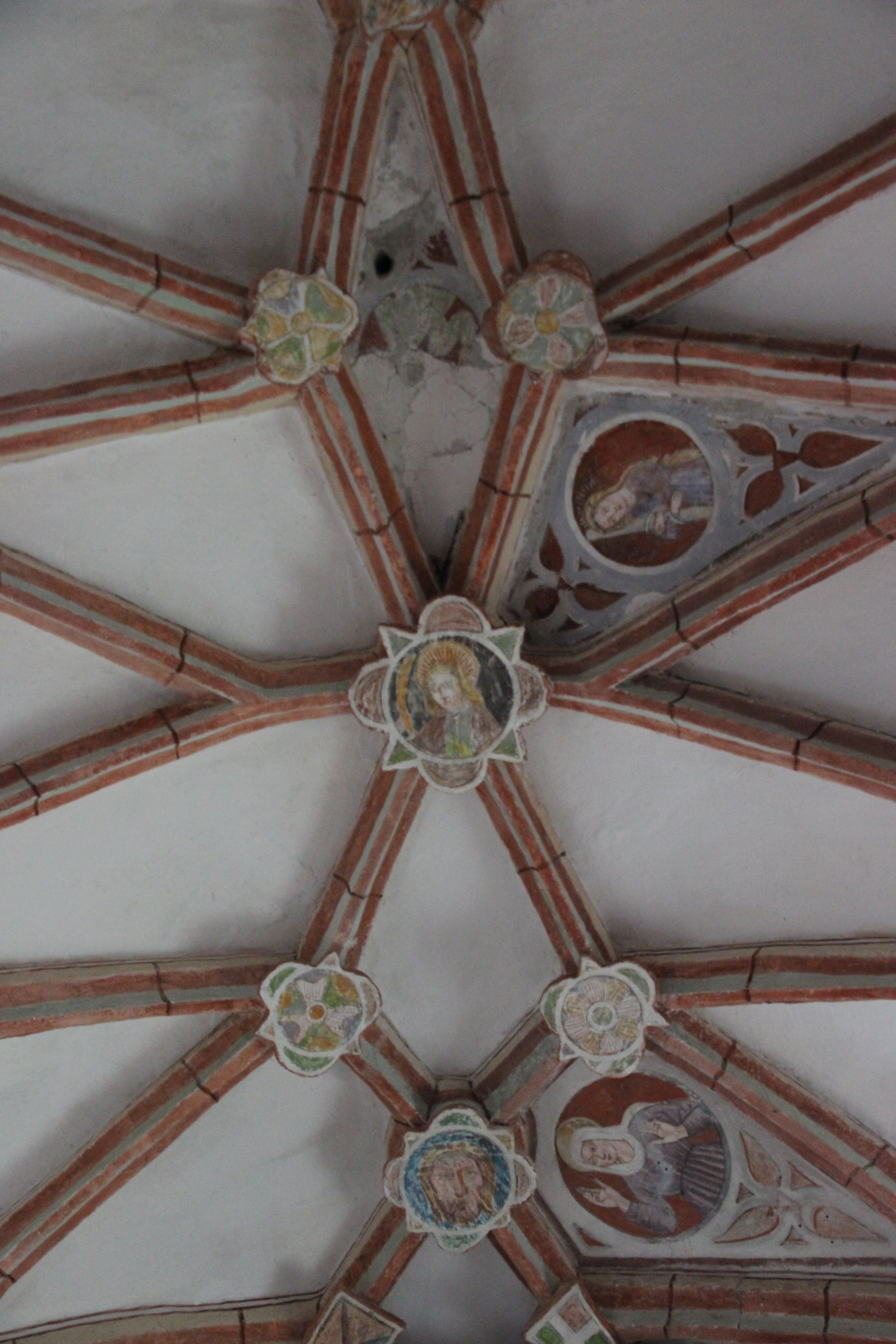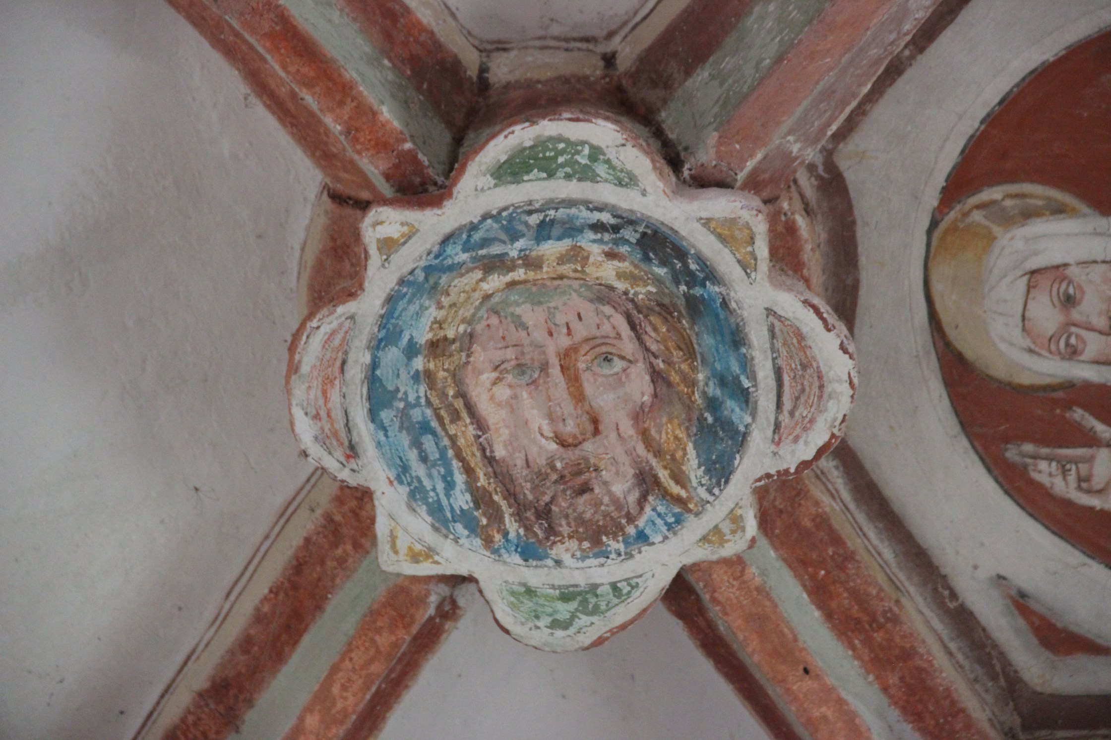 Per quanto riguarda l’interno, ai due lati dell’abside poligonale si può vedere una rappresentazione di Caino che sprofonda negli inferi e di Abele che ascende verso il cielo. Come in molte altre chiesette, la Veronica si trova su una chiave di volta dei costoloni intorno all’abside.