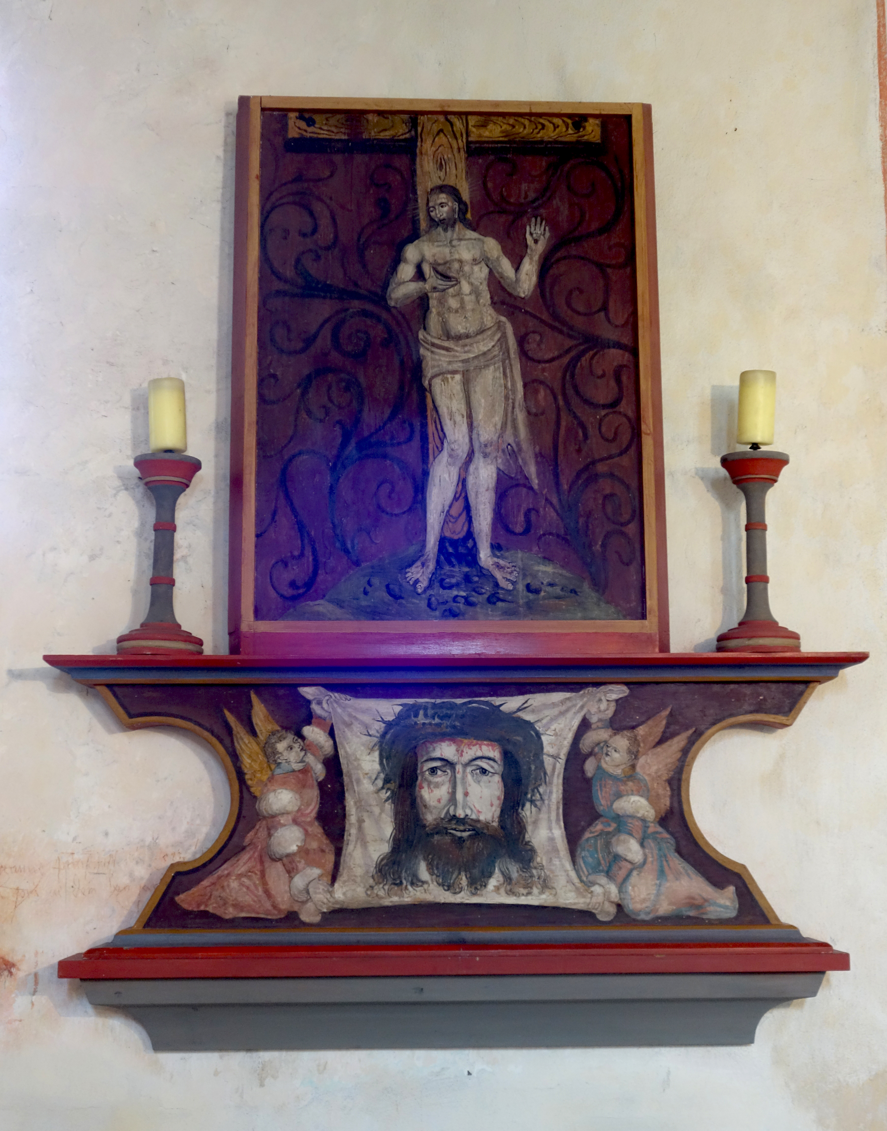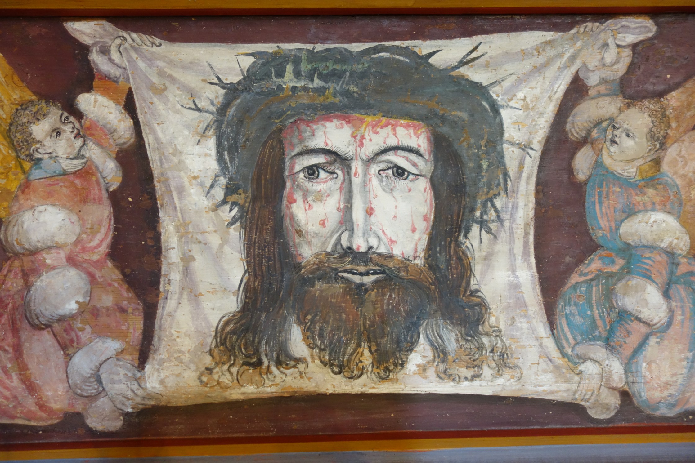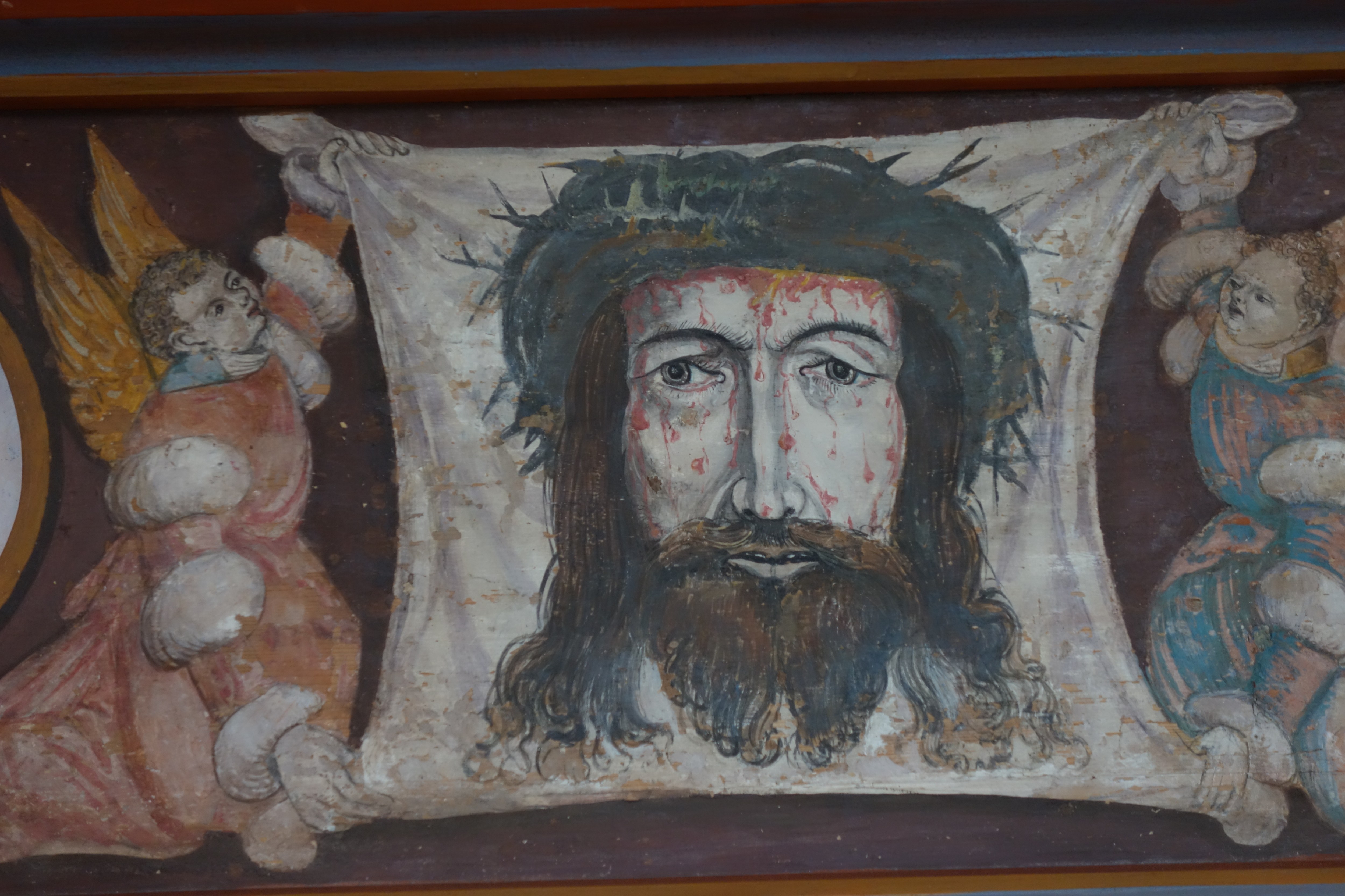 Cristo in pietร , Veronica sostenuta da angeli, altare, 1500-1599, St. Servatius auf dem Streichen, Schleching, Germania.