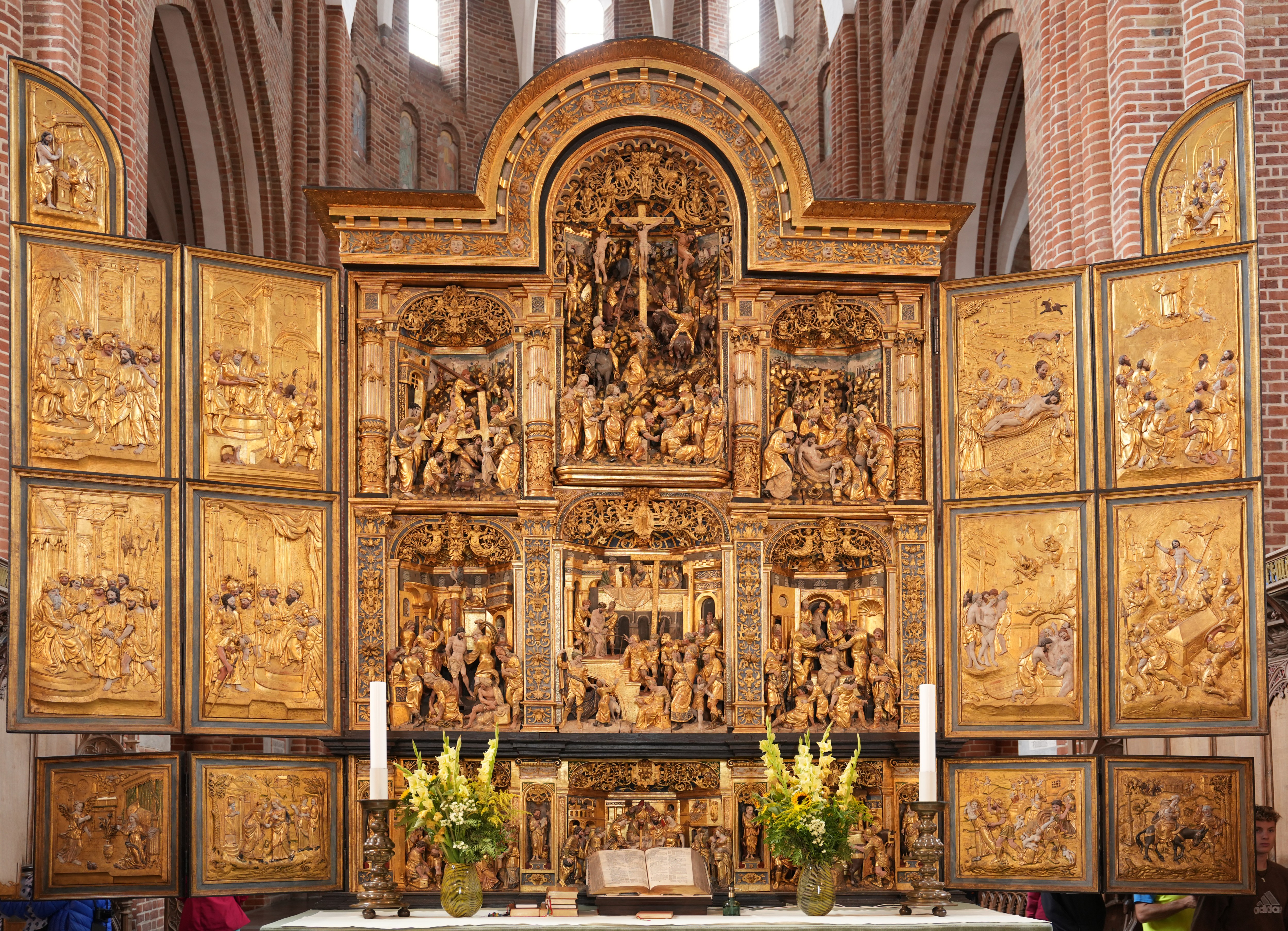 La magnifica pala venne donata da re Christian IV alla cattedrale tra il 1555 e il 1623 insieme ad altri ricchi arredi. A causa della riforma la chiesa era stata costretta a cedere tutte le sue proprietĂ e non aveva disponibilitĂ finanziarie per arredare la cattedrale. Il tema dell’altare sono le storie della vita di Cristo nello stile post Riforma. Nel 1970 la pala è stata restaurata e ora si presenta con i colori originali.
