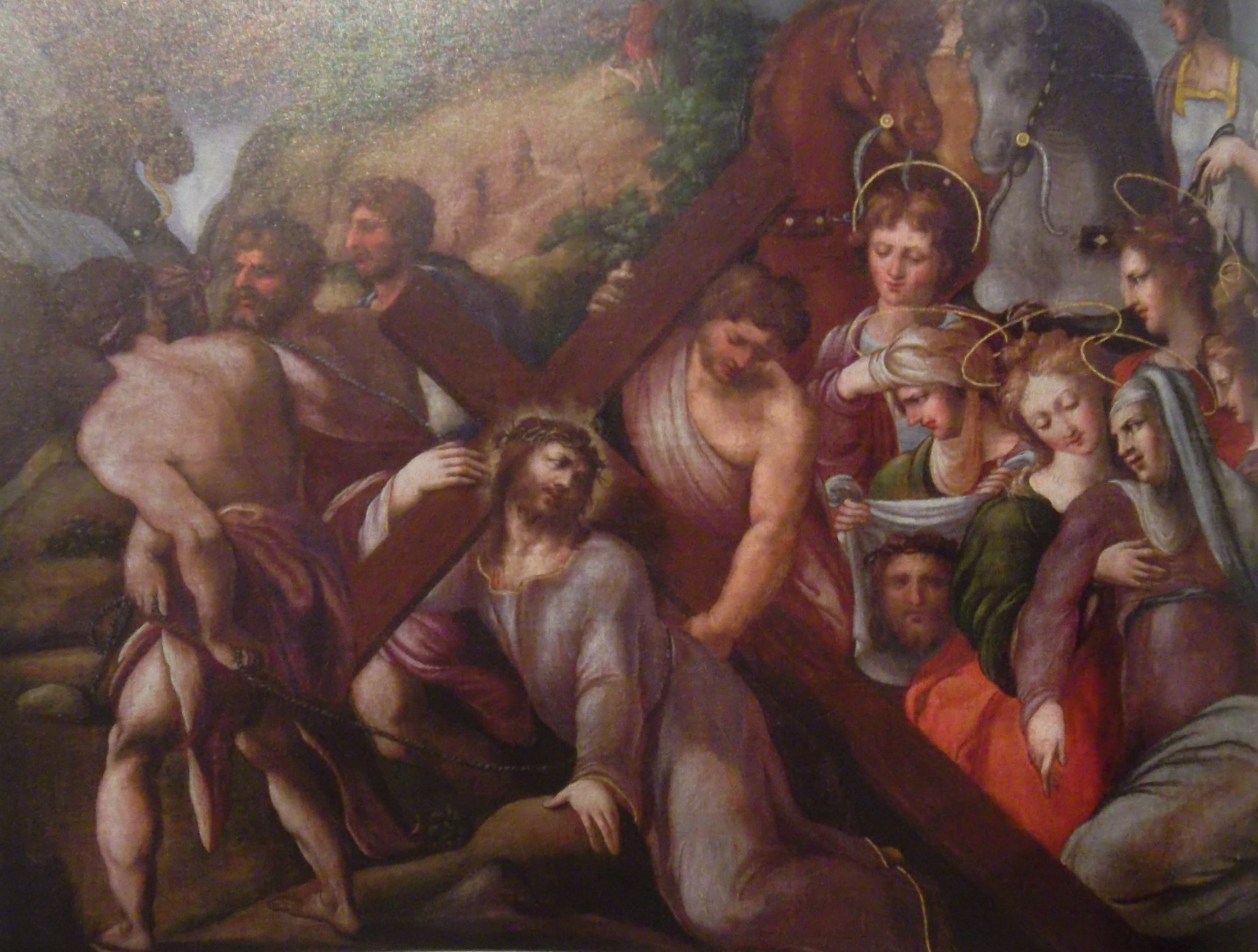 Pompeo Cesura (attribuito), Salita al calvario, olio su tela, 1565-1569, cappella del beato Vincenzo, chiesa di San Giuliano, L'Aquila, Italia. Museo Nazionale d'Abruzzo.