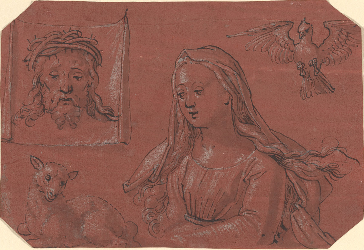 Tobias Stimmer (attribuito), Velo della Veronica e sant'Agnese, studio, disegno, 1550-1599. National Gallery of Art, Washington DC.