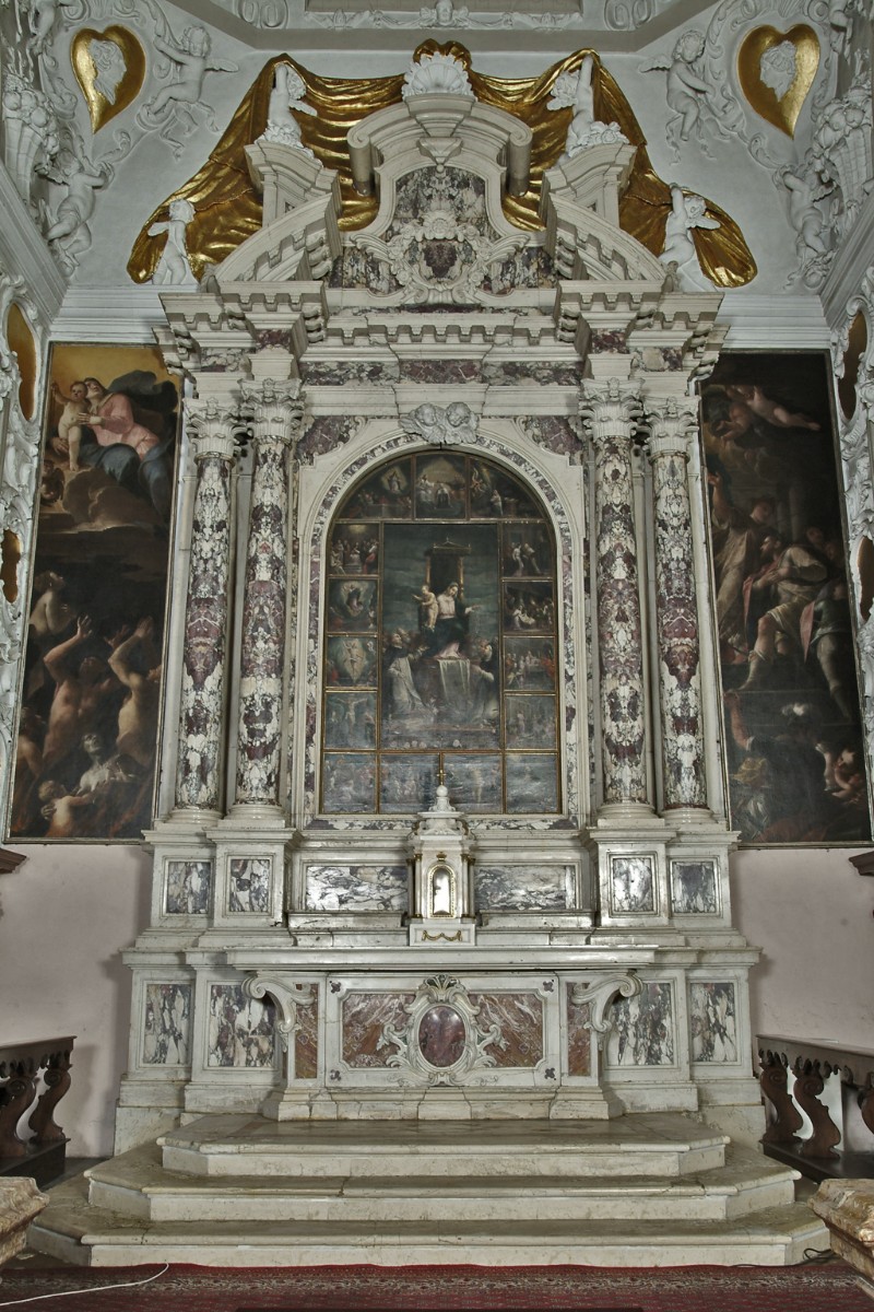 Matteo Grazioli, Gesù incontra la Veronica, olio su tela, altare maggiore, 1590, chiesa del Rosario, Thiene (Vi), Italia.