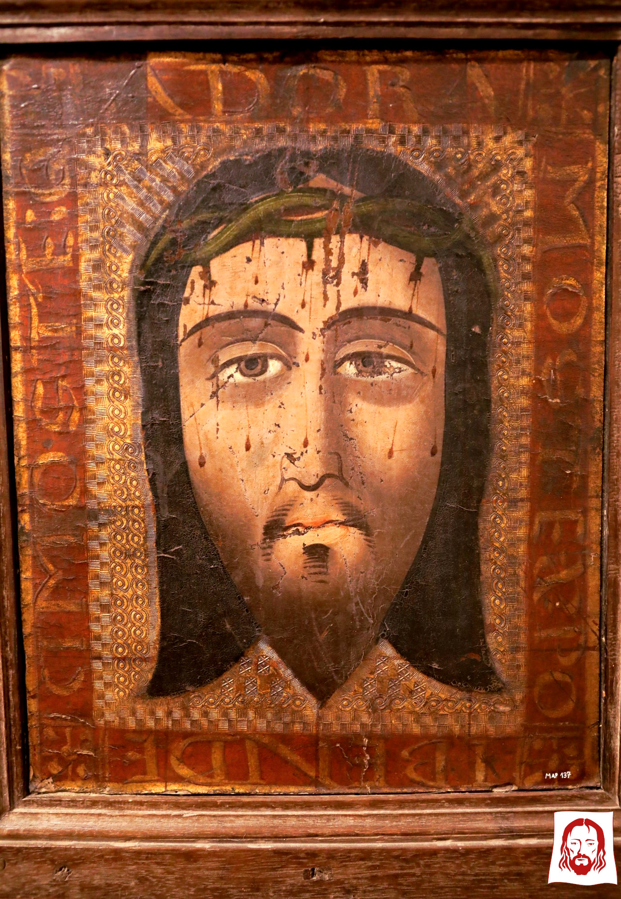 Volto Santo, olio su cuoio, guadamecÃ, 1500-1699, Spagna. Museu de l’Art de la Pell, Vic.