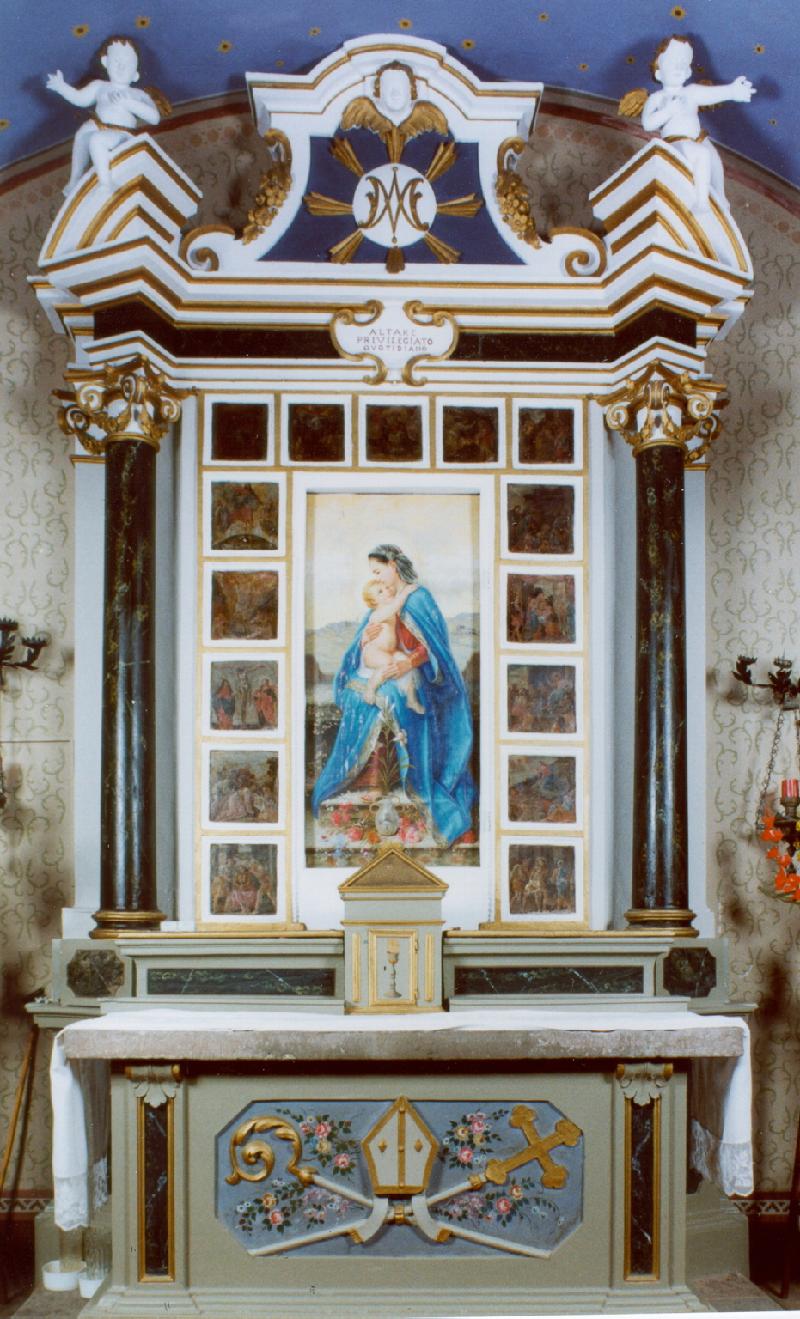 I Misteri del Santo Rosario circondano la pala con la Madonna col Bambino di Giovanni Tronfi (1944). La chiesa di San Fortunato risale a prima dell’anno 1000.