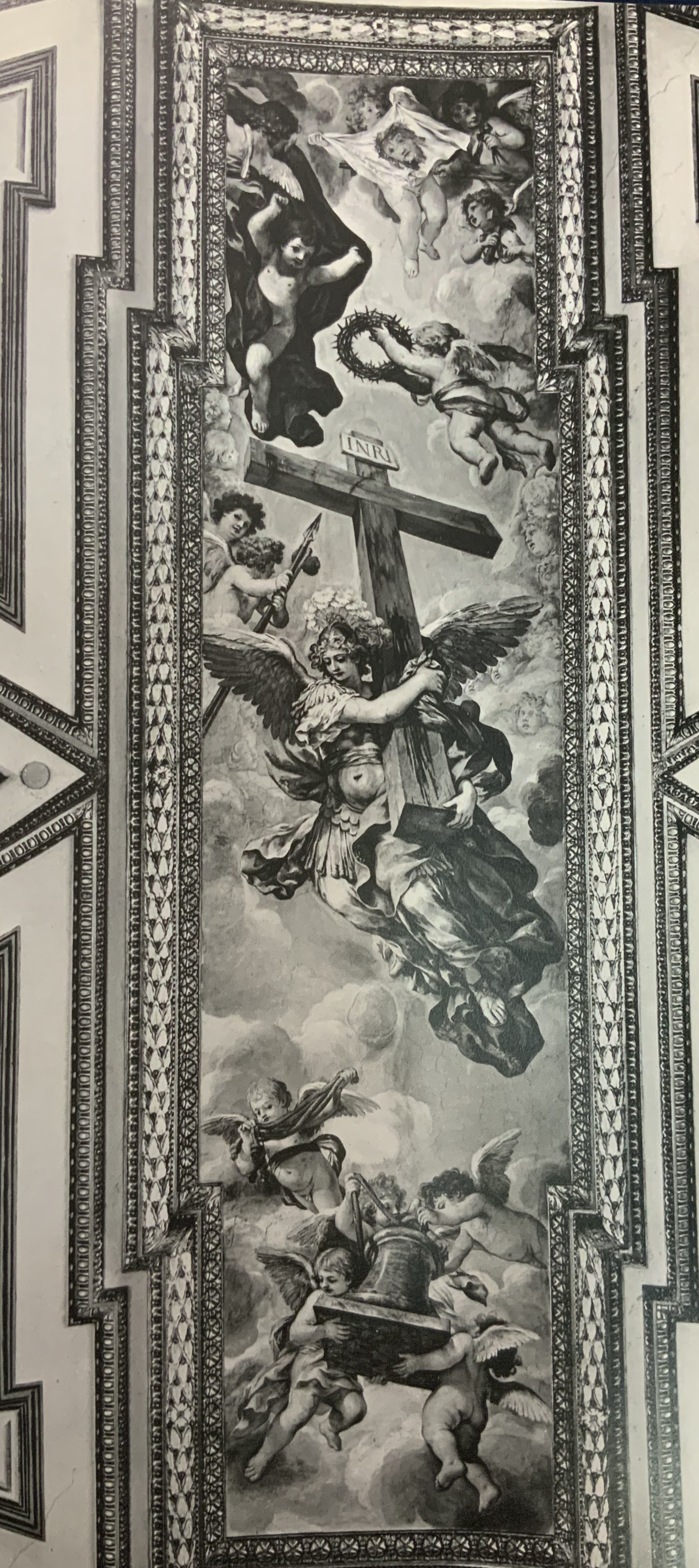 Pietro da Cortona (Pietro Berrettini), San Michele e angeli con i simboli della Passione, volta, affresco, 1638 ca., sacristia, Santa Maria in Vallicella (chiesa Nuova), Roma, Italia.