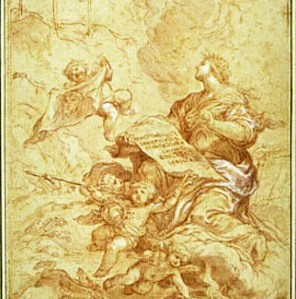 Baldassarre Franceschini detto il Volterrano, Simboli sacri e profani, disegno, frontespizio libro, 1611-1690, Firenze, Italia. Musée du Louvre, département des Arts graphiques, Paris.