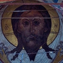 Cristo Pantocratore, affresco, cupola, 1600-1699, cattedrale dell'Assunzione del Cremlino (Uspensky Sobor), Mosca, Russia.