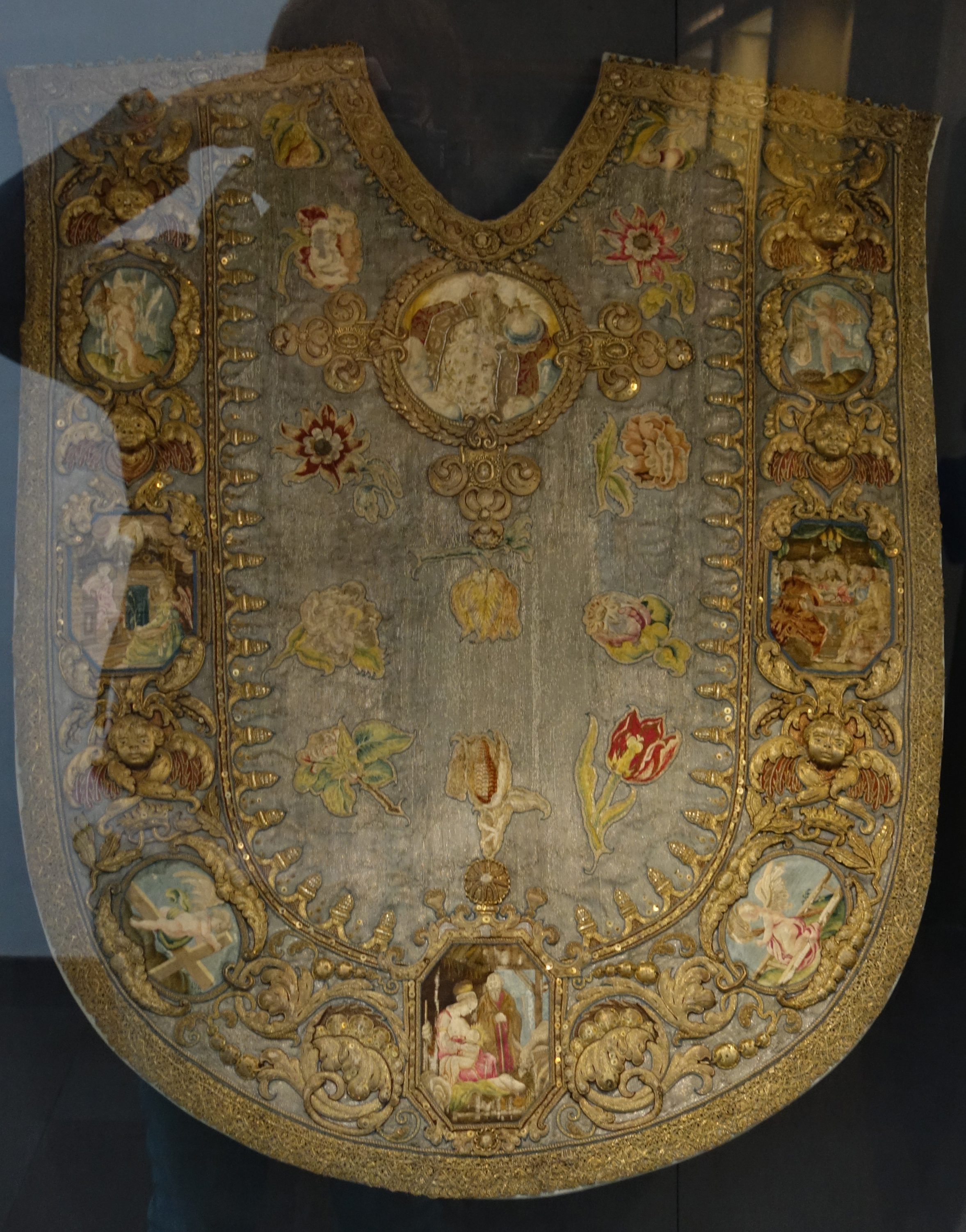 La magnifica casula venne donata nel 1661 da Hendrik Jacobsen alla chiesa di San Nicola. Sul fronte è raffigurato Dio Padre e lungo il bordo si alternano miniature con scene della Natività e con putti con i simboli della Passione. Sul retro è ricamato in altorilievo il Cristo Crocifisso e lungo il bordo scene della Passione.