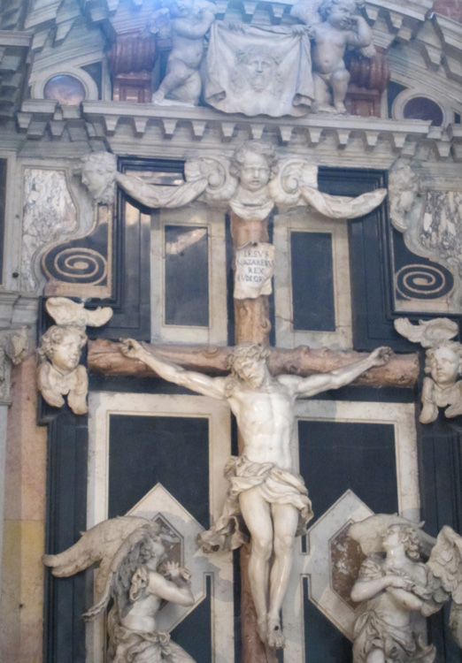 Josse De Corte, Altare del Crocifisso, rilievo in marmo, 1672, Santa Maria Gloriosa dei Frari, Venezia, Italia.