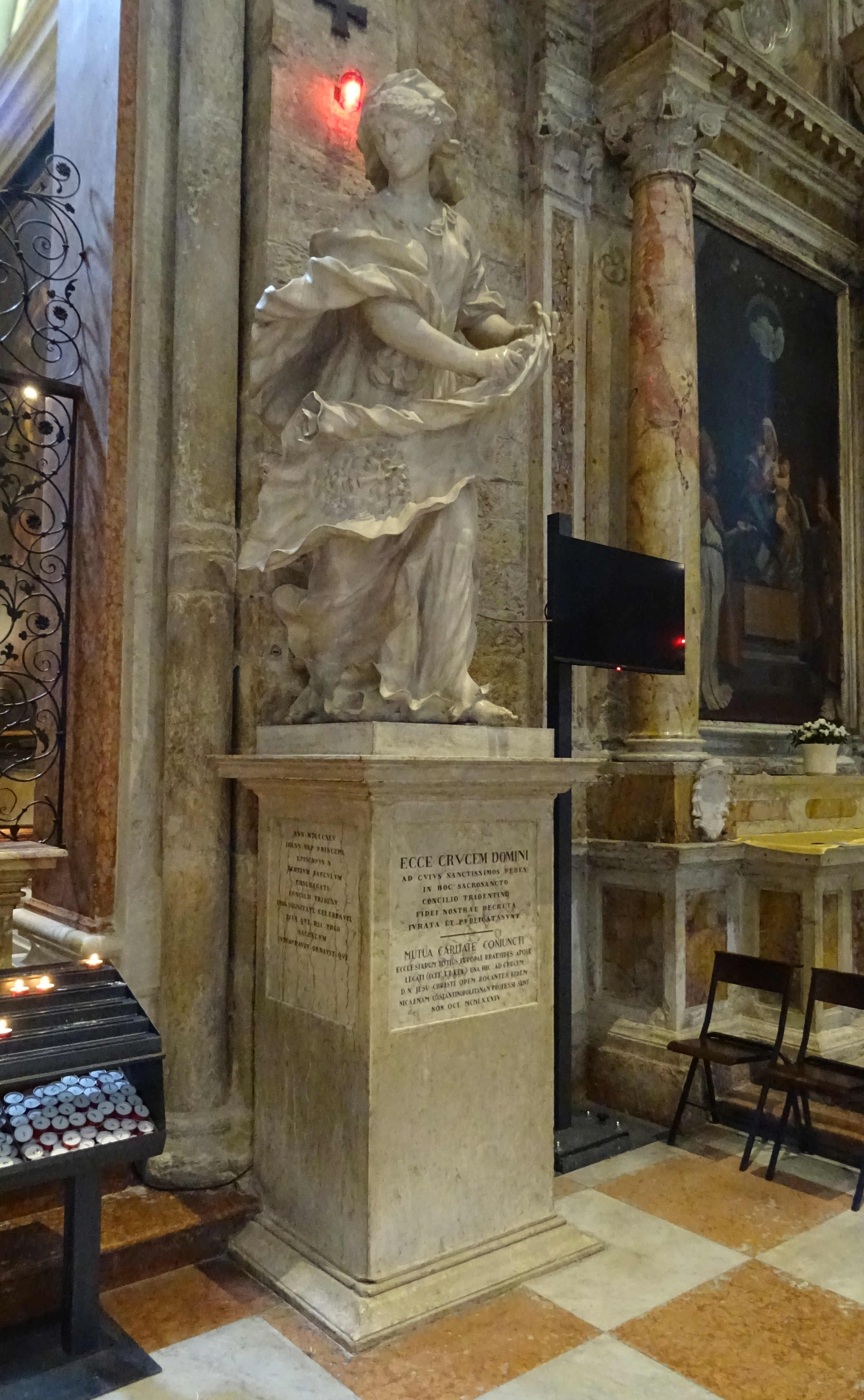 Paul Strudel, Santa Veronica con il velo, statua, marmo, 1687-1688, Cappella Alberti (del Crocifisso), Cattedrale San Vigilio, Trento, Italia.