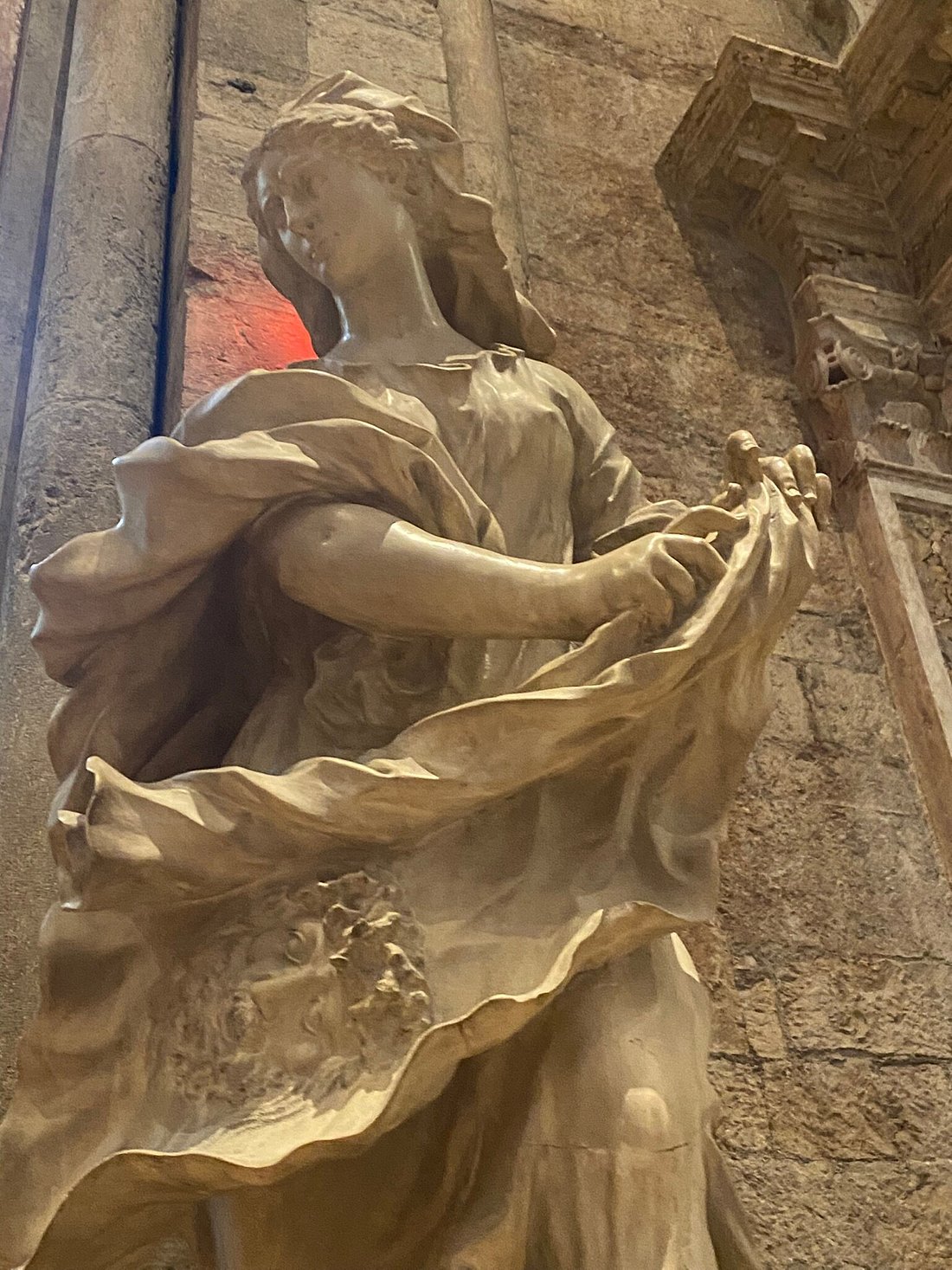 Le due statue barocche della Maddalena e di santa Veronica, che fiancheggiavano l’altare della cappella del Crocifisso, in occasione dell’ultimo restauro furono trasportate nella navata ai lati della cancellata in ferro battuto.