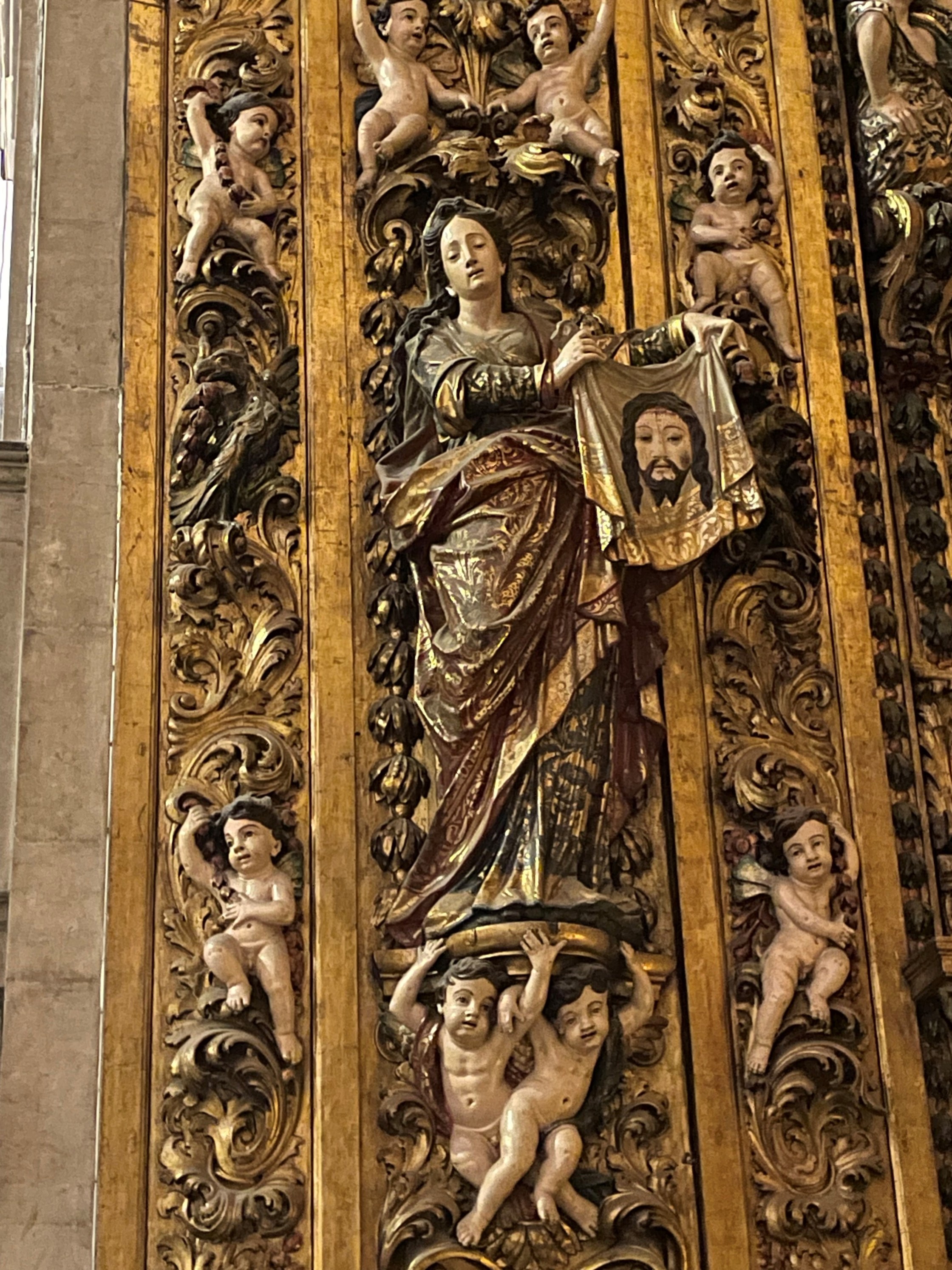 Manuel Machado, Santa Veronica con il velo, scultura in legno policroma, 1708-1711, Capela de Nossa Senhora da Piedade, Igreja de São Roque, Lisboa, Portogallo.