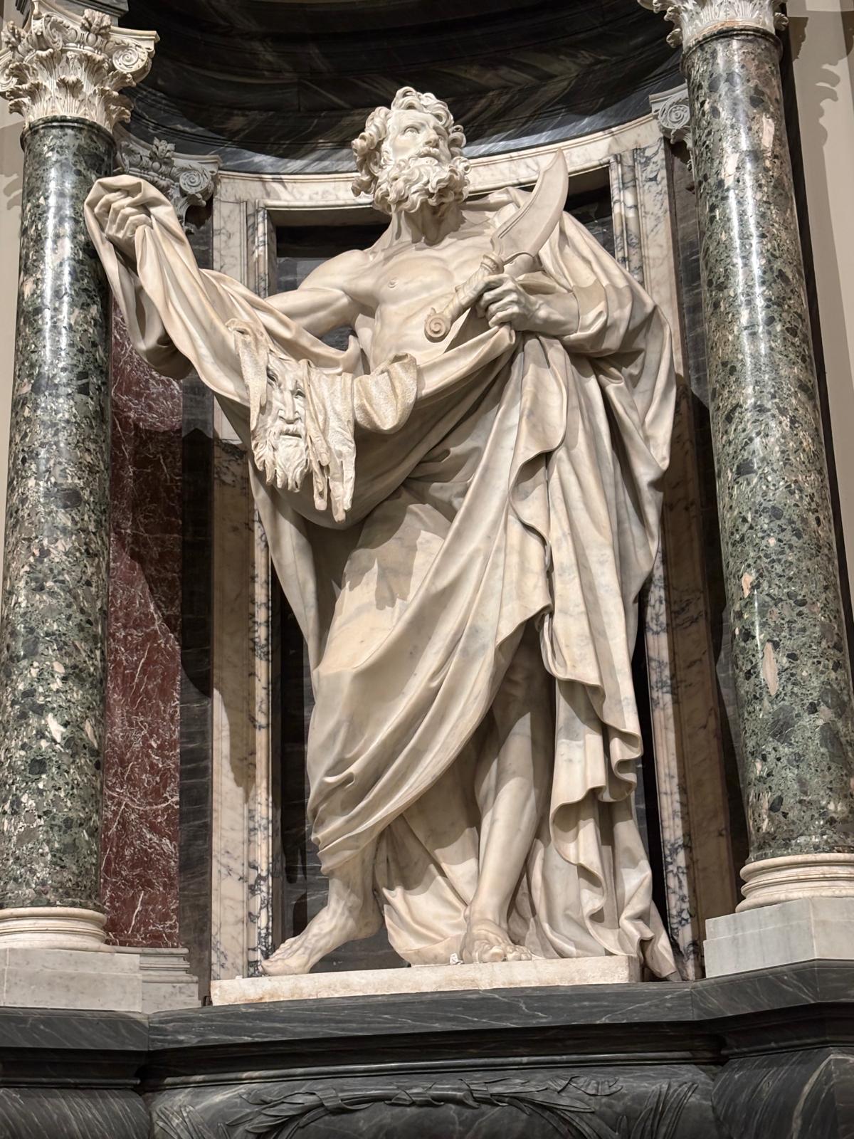 Pierre Le Gros il Giovane, San Bartolomeo, statua, marmo, 1708-1718, basilica di S. Giovanni in Laterano, Roma, Italia.