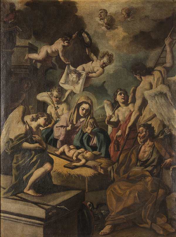 Ambito calabrese, Natività con i simboli della Passione, olio su tela, 1700-1749, Italia. Pinacoteca Civica di Reggio Calabria.