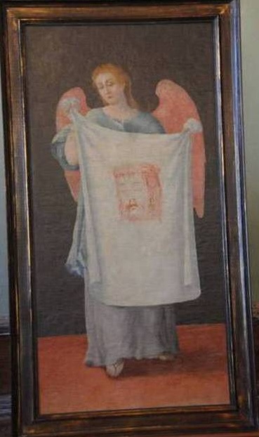 Joaquim Natividade (attribuito), Velo della Veronica sostenuto da un angelo, olio su tela, tempera su tela, 1700-1799, chiesa Nossa Senhora do Rosário, Lavras, Minas Gerais, Brasile.