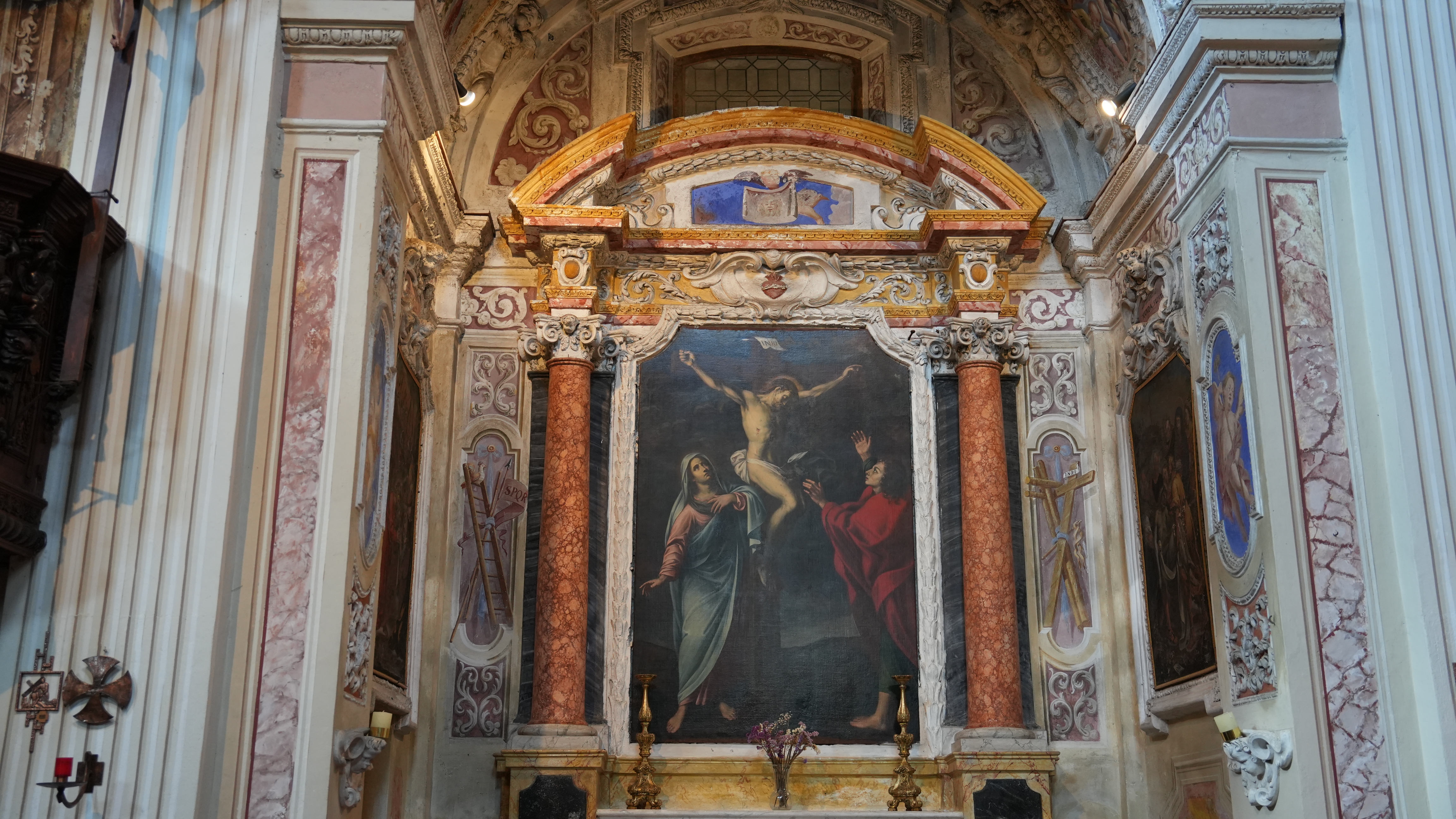 La Veronica tra i simboli della Passione è rappresentata anche nella cappella detta “dei Morti” (la seconda a destra) istituita dall’omonima antica confraternita e che rimanda all’Ossario. Nella terza cappella a sinistra è rappresentata una salita al Calvario, nella prima cappella a sinistra è rappresentata la Sindone.