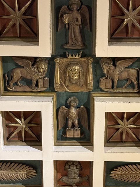 Veronica e simboli della Passione, mosaico, 1920 ca., cappella del Crocifisso, santuario del Sacro Cuore, Busto Arsizio (Va), Italia.