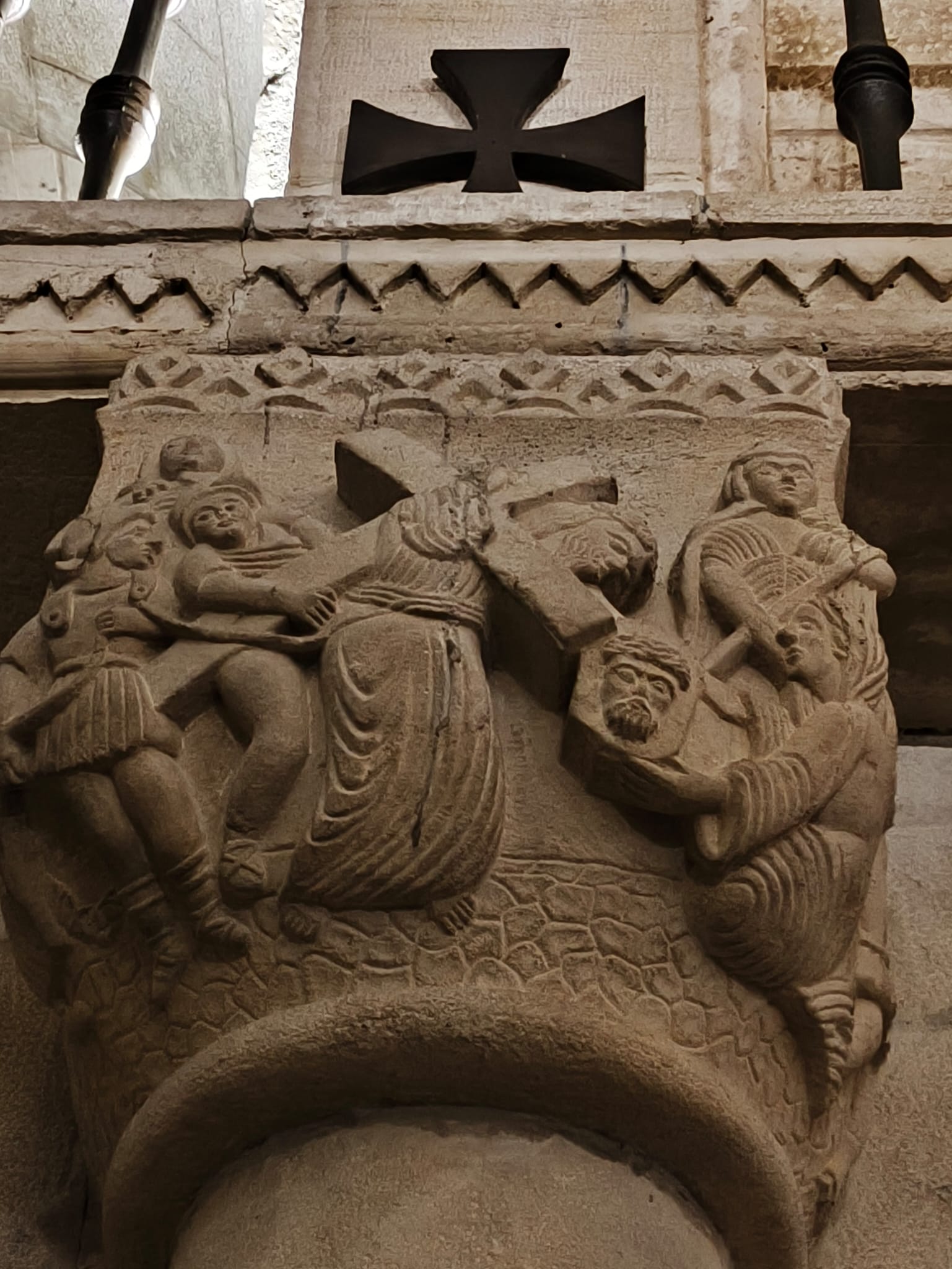 Salita al calvario, rilievo in pietra, 1948-1957, iglesia de San Miguel, Puente Viesgo, Spagna.