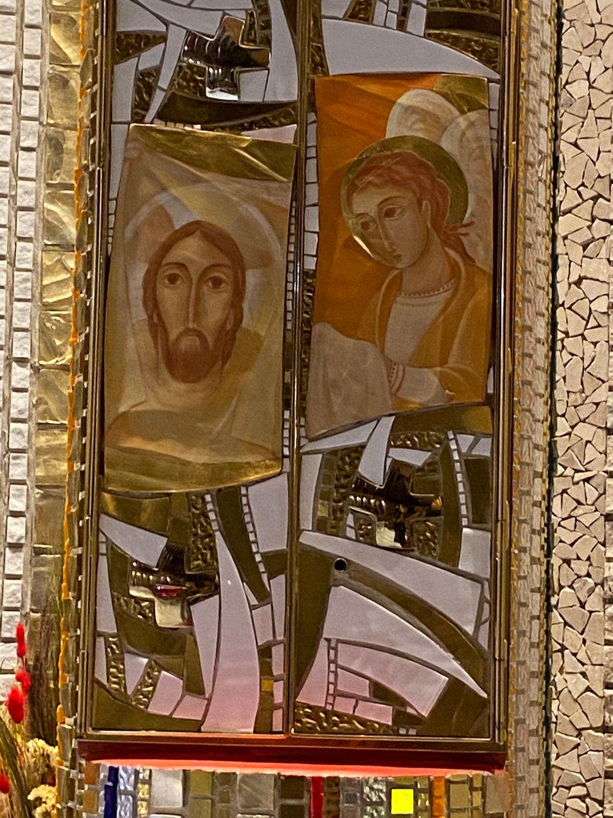 Marko I. Rupnik e Atelier del Centro Aletti, Veronica, tabernacolo, 2015, chiesa della Beata Vergine Maria del Monte Carmelo, Snagov, Romania.